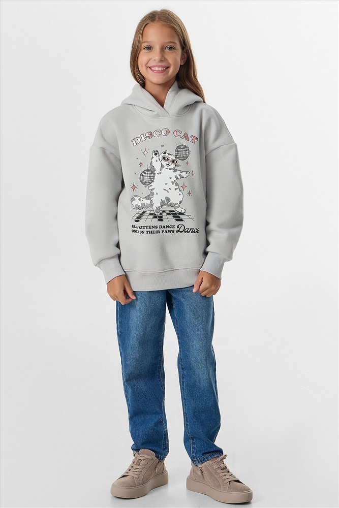 Стильное худи силуэта оверсайз для девочек, созданное из трикотажного футера с теплым подчесом. Округлая горловина, просторный уютный капюшон, длинные просторные рукава на манжетах – ничего лишнего. Дополнительную свободу дарит спущенная линия плеча. Отличный вариант для вашей девочки!