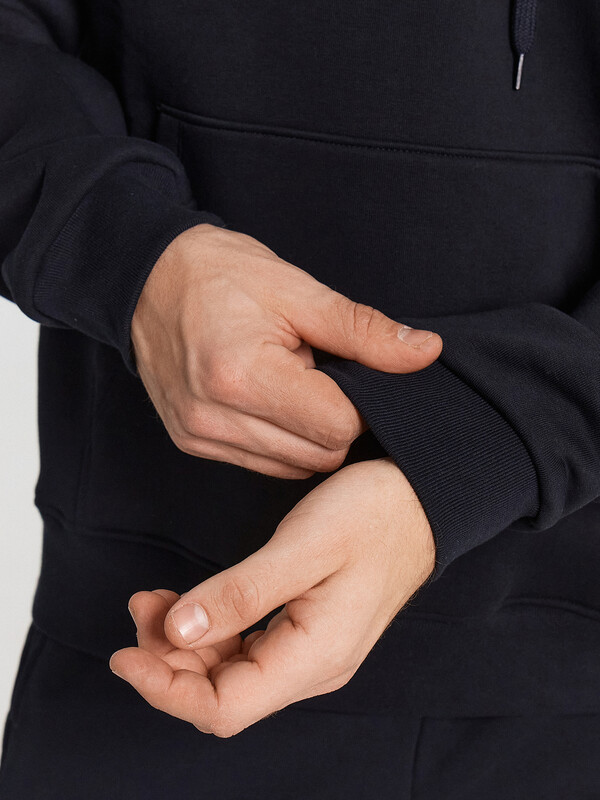 Мужское худи станет неотъемлемой частью вашего гардероба благодаря сочетанию стиля и комфорта. Капюшон на кулиске обеспечивает дополнительное удобство и защиту от ветра, а длинные рукава с эластичными манжетами из рибаны удерживают тепло и создают уютные ощущения. Спущенная линия плеча придает изделию расслабленный и современный вид. Накладной карман кенгуру добавляет функциональности, позволяя носить с собой необходимые мелочи. Худи, изготовленное из футера с подчесом, отличается мягкостью и теплотой, обеспечивая комфорт при носке в прохладное время года. Это универсальный элемент гардероба, который легко сочетается с различными предметами одежды, создавая стильные и практичные образы.