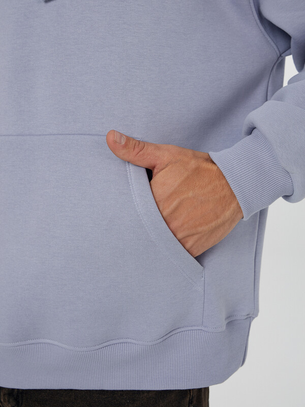 Теплое мужское худи с начесом создано для активного отдыха и зимнего настроения. Оно выполнено из футера с начесом, который обладает мягкой внутренней стороной, сохраняющей тепло и обеспечивающей комфорт. Свободный прямой крой, спущенное плечо и длинные рукава с эластичными манжетами создают удобную посадку.