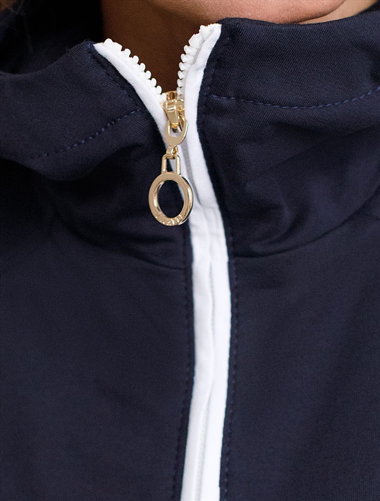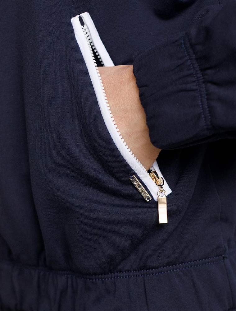 Худи темно-синего цвета на молнии выполнено из премиального футера двухнитки плотностью 240 Г/м2. Натуральный состав обеспечивает хорошую воздухопроницаемость, мягкость и приятные тактильные ощущения, Эластичный материал зип-худи позволяет свободно двигаться без лишнего стеснения, а также отлично сохраняет форму даже после длительного ношения. Манжеты на рукавах и резинка по низу обеспечивают надежную посадку, сохраняя тепло в прохладную погоду. Зипка на молнии отличается универсальной длиной, которая идеально подходит для повседневного и спортивного образа. Капюшон добавляет уюта, а прорезные карманы по бокам добавляют функциональности, сохраняя при этом стильный внешний вид. На груди расположена аккуратная нашивка в виде логотипа бренда. Представленная размерная линейка позволяет подобрать оптимальный вариант для любой фигуры и размера, на маленький или плюс сайз, обеспечивая идеальную посадку без компромиссов по стилю. Эта толстовка из футера станет отличным дополнением к базовому гардеробу, сочетая практичность с элегантностью.