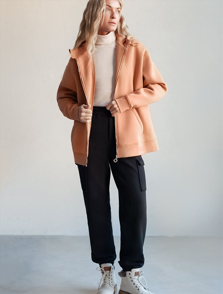 Худи на молнии выполнено из премиального футера трехнитки с теплым начесом. Модель дополнена боковыми карманами и золотистой фурнитурой, что поддерживает актуальный стиль спорт-шик. Свободный крой подходит для любой фигуры. Ранней осенью или поздней весной можно носить в качестве верхней одежды.