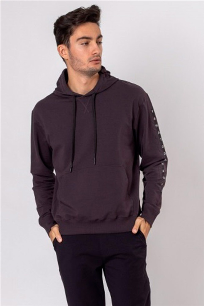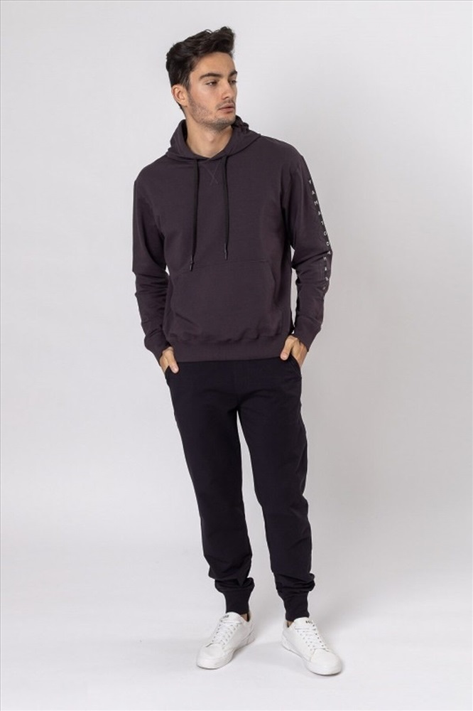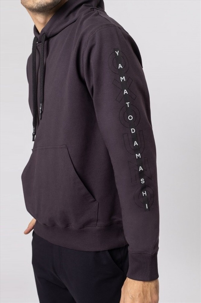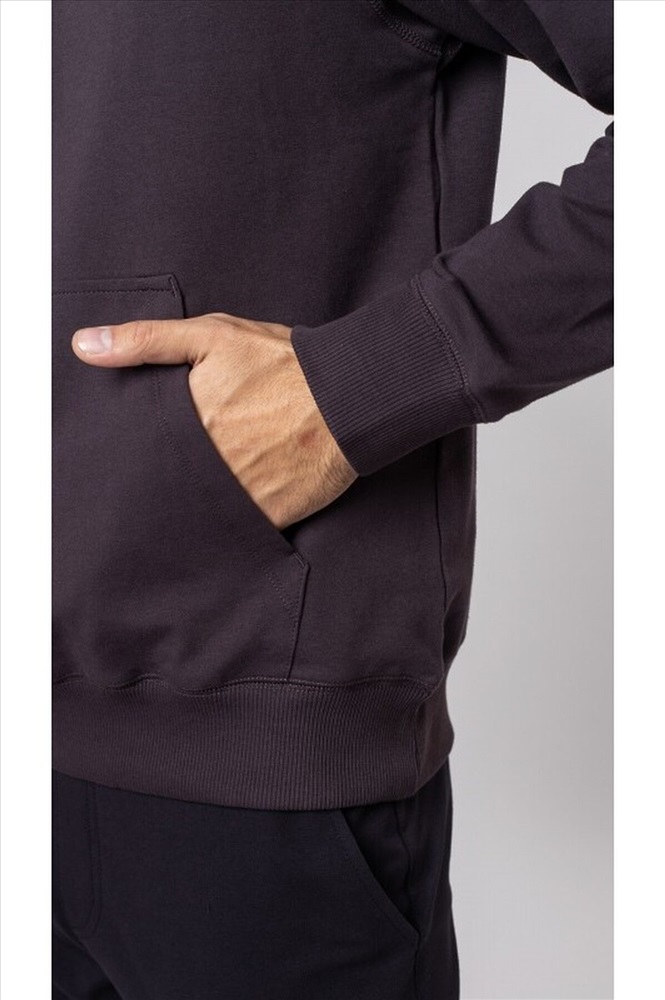 Мужской худи с капюшоном, карман кенгуру, втачной рукав, широкий пояс и манжеты из кашкорсе, декор отстроченный треугольник из кашкорсе .