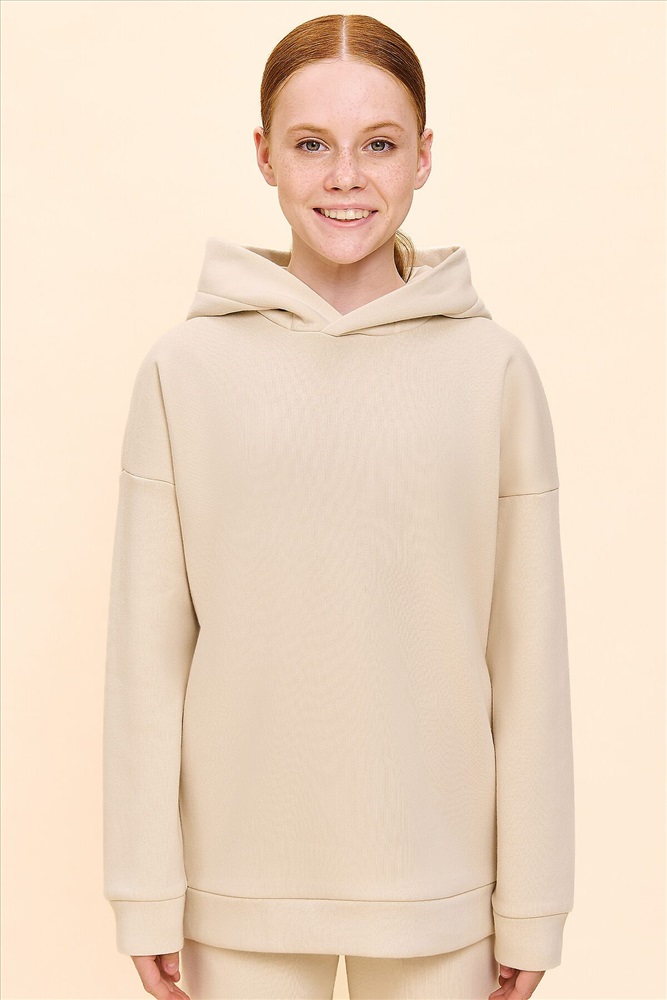 Худи для девочек из футера с начесом свободного силуэта с длинным рукавом, без карманов. Это однотонная базовая вещь для детского гардероба. Красивая и яркая одежда для ребенка, практичная и удобная при надевании для родителей. Двухшовный капюшон с подкладом из основного материала аккуратно ложится по голове и убережет от холода. Манжеты рукавов и низа изделия из основной ткани. Не утягивают, но придают силуэт.