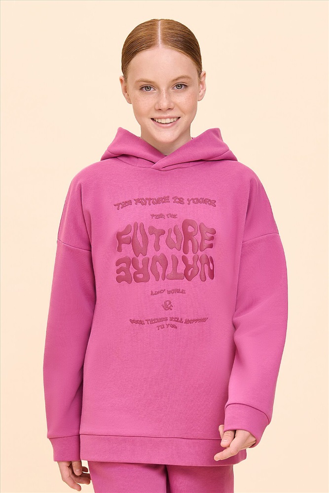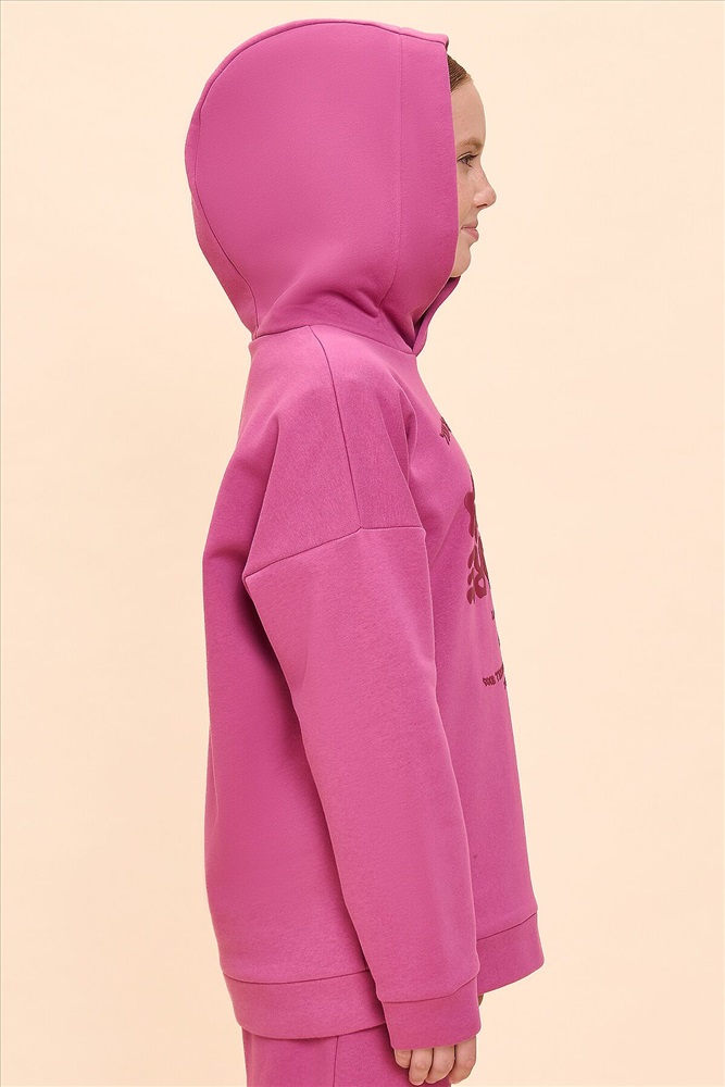 Худи для девочек из футера с начесом свободного силуэта с длинным рукавом, без карманов. Это однотонная базовая вещь для детского гардероба. Красивая и яркая одежда для ребенка, практичная и удобная при надевании для родителей. Двухшовный капюшон с подкладом из основного материала аккуратно ложится по голове и убережет от холода. Манжеты рукавов и низа изделия из основной ткани. Не утягивают, но придают силуэт.