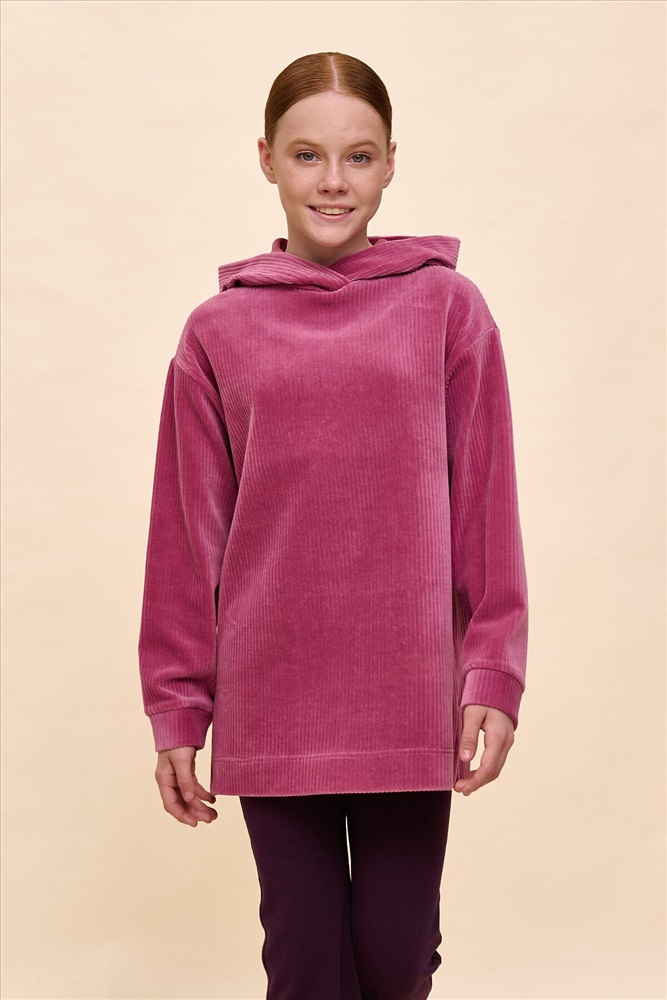 Модное худи для девочек. Велюровый джемпер в рубчик актуального оверсайз-силуэта со спущенным плечом подарит ребёнку комфорт и свободу движений. Худи с капюшоном с двумя швами, что обеспечивает анатомически правильную форму и комфортную посадку по голове. Спинка немного длиннее переда, по бокам разрезы — актуальные, стильные детали. Худи однотонное, без принта. Изделие неприхотливо в уходе. В составе ткани (трикотажный велюр) преобладает высококачественный хлопок — худи приятно на ощупь и великолепно пропускает воздух, давая коже ребёнка дышать. Благодаря эластану толстовка сохраняет отличную форму в течение продолжительного времени. Джемпер выполнен в универсальном тёмно-сером цвете. Его просто комбинировать с любыми брюками, легинсами, джинсами. В линейке представлены следующие размеры: 1 (86): 2 (92): 3 (98): 4 (104): 5 (110): 6 (116): 7 (122): 8 (128): 9 (134): 10 (140): 11 (146). Худи детское идеально для девочек дошкольного возраста, младших школьниц и девочек-подростков. Такой джемпер можно носить в детский сад, на прогулки, на отдых и дома. Худи без начёса оверсайз подходит для круглогодичного применения: летом, осенью, зимой, весной и демисезон. Это чудесный подарок дочери, внучке или сестре на Новый год и любой другой праздник.