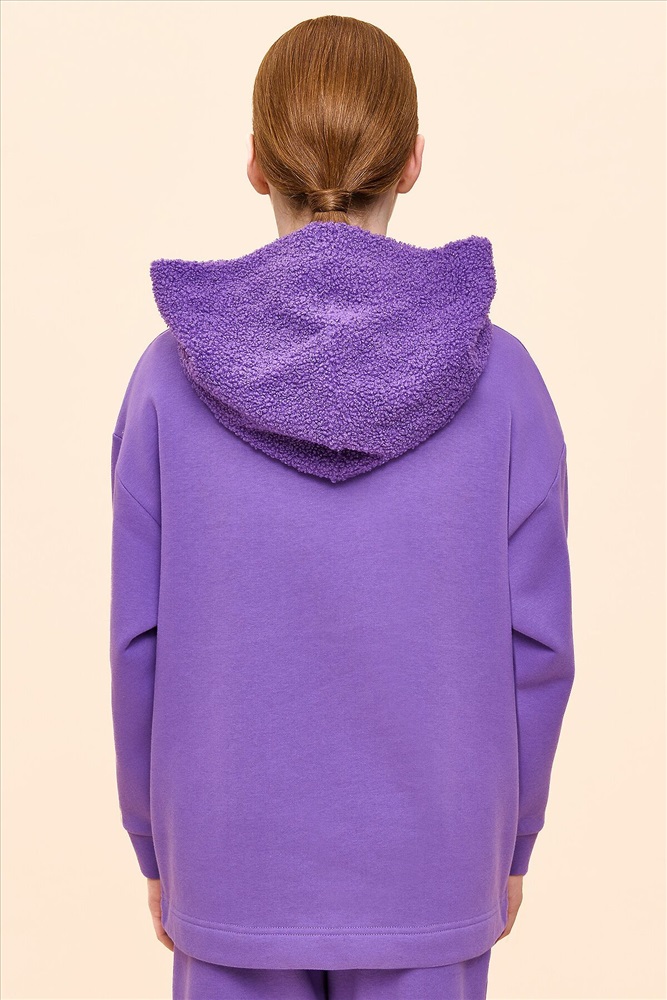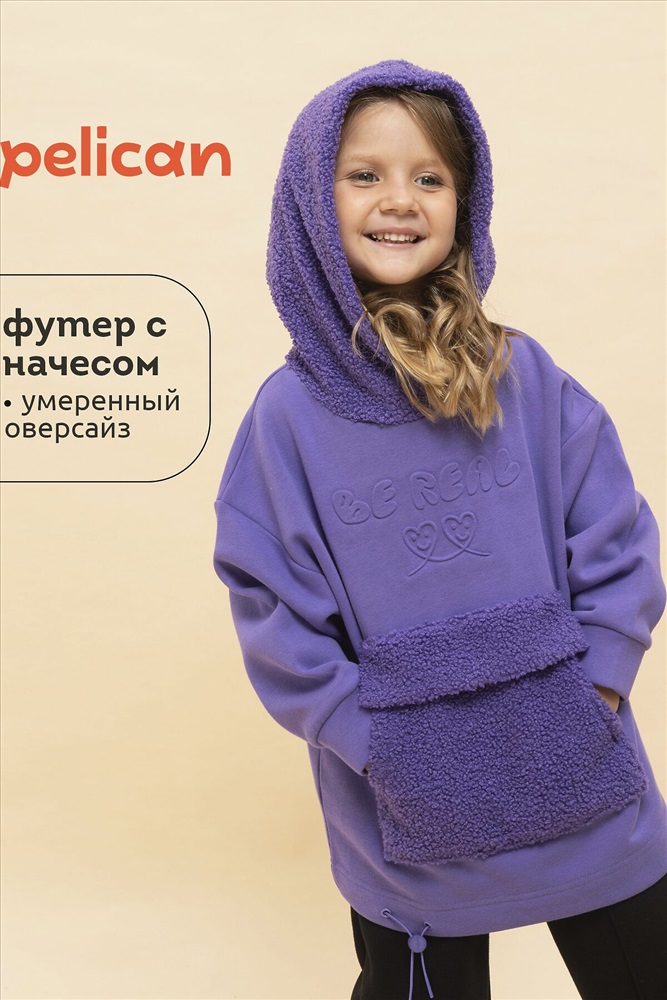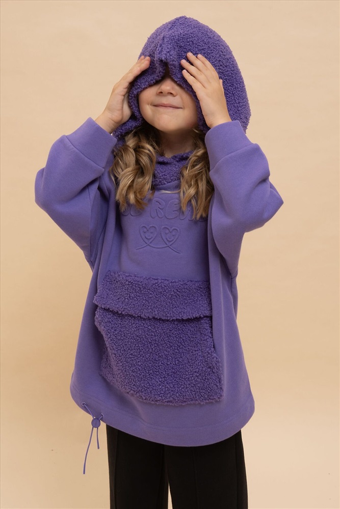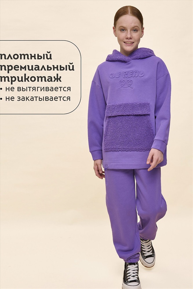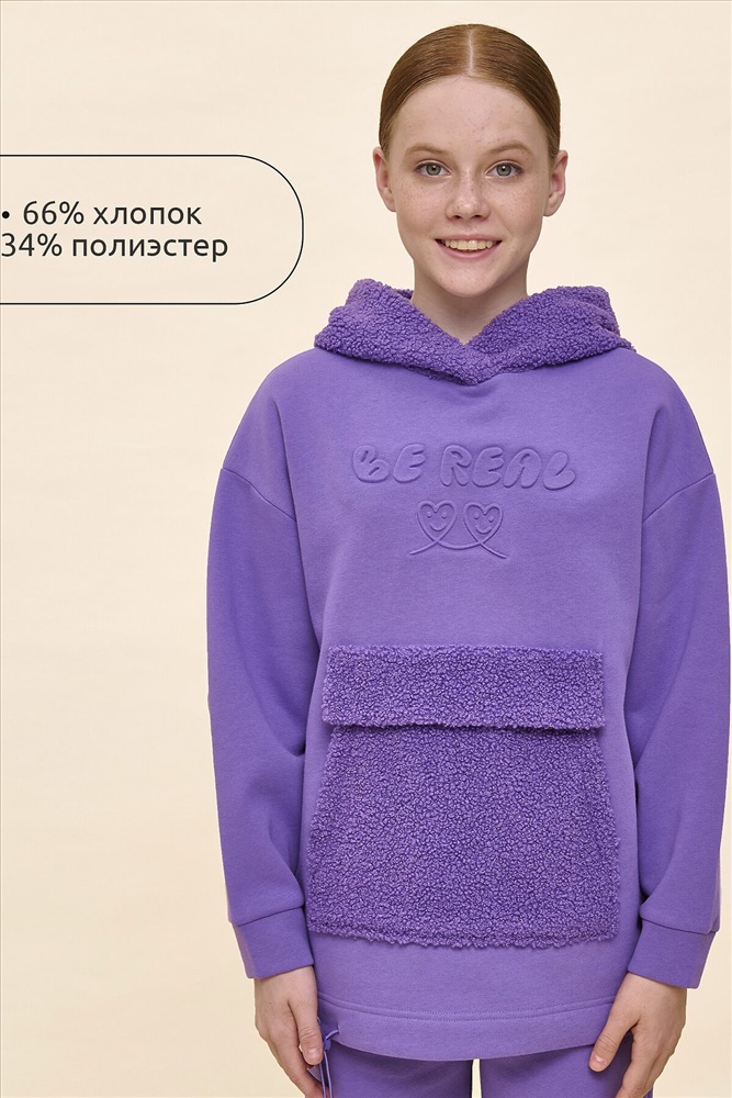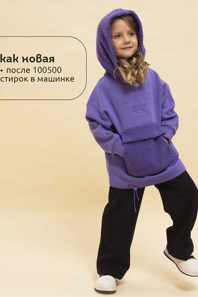 ID товара: 1061000 Состав: 66% Хлопок, 34% Полиэстер, вставка- 100% Полиэстер Сезон: Осень/Зима Длина: Средняя Фасон: Свободный Рукав: длинные Вырез горловины: Капюшон Тип карманов: Кенгуру Основная ткань: Хлопок Стиль: повседневный Страна бренда: Россия Страна производства: Китай Худи детское для девочки актуального оверсайз-силуэта со спущенным плечом. Трендовое сочетание разных фактур — футера с начёсом и искусственного меха — поможет создать стильный и одновременно уютный образ. Худи с капюшоном из искусственного меха с подкладкой из мягкого хлопка может заменить ветровку. Большой и удобный накладной карман по переду также выполнен из искусственного меха с приятной на ощупь фактурой барашка. По низу утяжка с пластиковым стоппером — можно регулировать ширину и посадку худи. Модель неприхотлива в уходе. Оверсайз худи выполнено из ткани с высоким содержанием хлопка — джемпер мягкий, воздухопроницаемый и гипоаллергенный. Полиэстер помогает сохранить цвет и первоначальный внешний вид надолго. Модель украшает модный пресс-принт (изображение в тон изделия выдавлено по специальной технологии), изображающий два милых улыбающихся сердечка, надпись переводится: «будь реальным/настоящим». Изделие выполнено в трендовой, но универсальной расцветке, его легко комбинировать с любыми брюками, джинсами. Отличное худи оверсайз для девочки дошкольного и младшего школьного возраста, а также девочки-подростка. Джемпер подходит для детского сада, прогулок, отдыха, дома. Худи оверсайз с капюшоном подходят для круглогодичной носки. Помните о правильном уходе за изделием: рекомендуется стирать при температуре не выше 30 °C, без предварительного замачивания, с изнанки. Это поможет сохранить качество и цвет худи на длительное время. Не забывайте о выборе правильного размера. Используйте таблицу размеров на фотографии, чтобы выбрать подходящий вариант для вашей девочки. Обратите внимание, что цвет товара на экране вашего устройства может отличаться от реального. Комментарии к товару