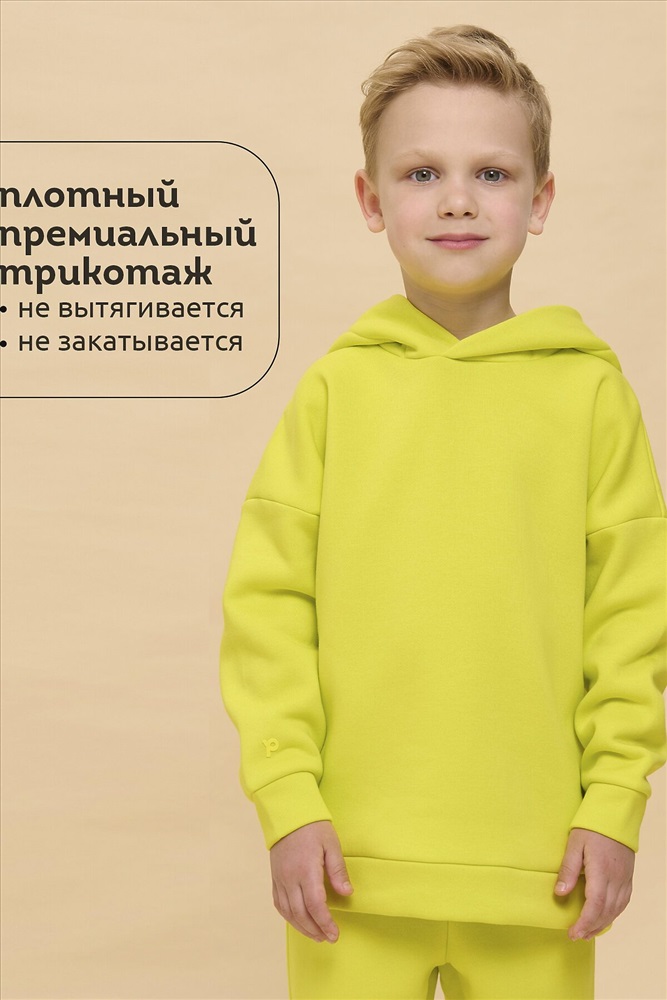 ID товара: 1067208 Состав: 60% Хлопок, 40% Полиэстер Сезон: Демисезон Длина: Средняя Фасон: Свободный Рукав: длинные Вырез горловины: Капюшон Основная ткань: Хлопок Стиль: повседневный Страна бренда: Россия Страна производства: Китай Худи для девочек и мальчиков из футера с начесом свободного силуэта с длинным рукавом, без карманов. Это однотонная базовая вещь для детского гардероба. Красивая и яркая одежда для ребенка, практичная и удобная при надевании для родителей. Двухшовный капюшон с подкладом из основного материала аккуратно ложится по голове и убережет от холода. Манжеты рукавов и низа изделия из основной ткани. Не утягивают, но придают силуэт. Деликатная изюминка модели - силиконовая буква P из логотипа бренда на правом рукаве. Комментарии к товару