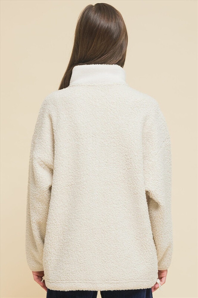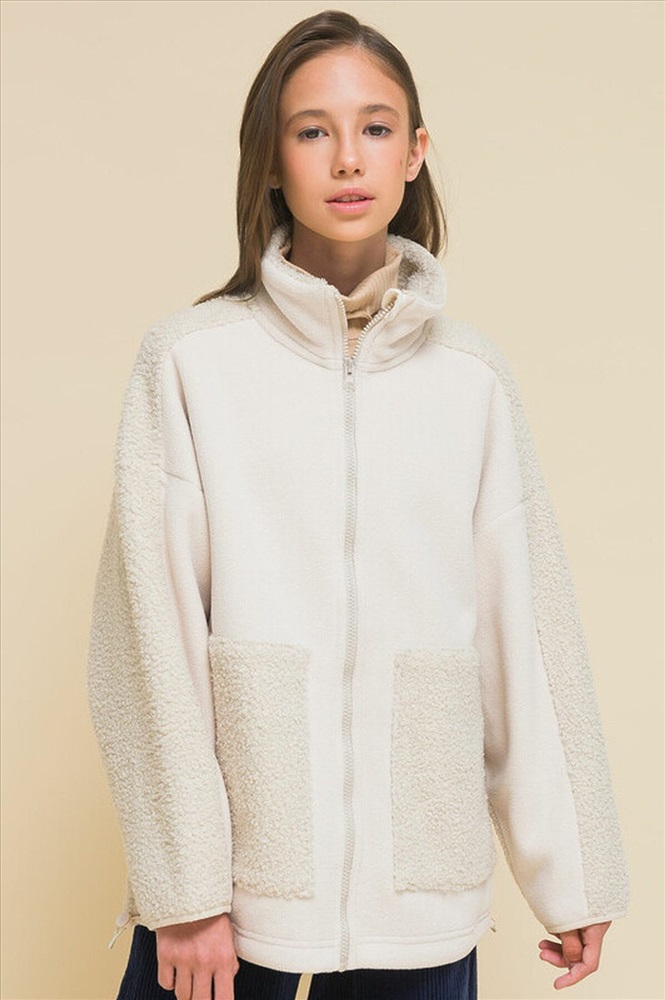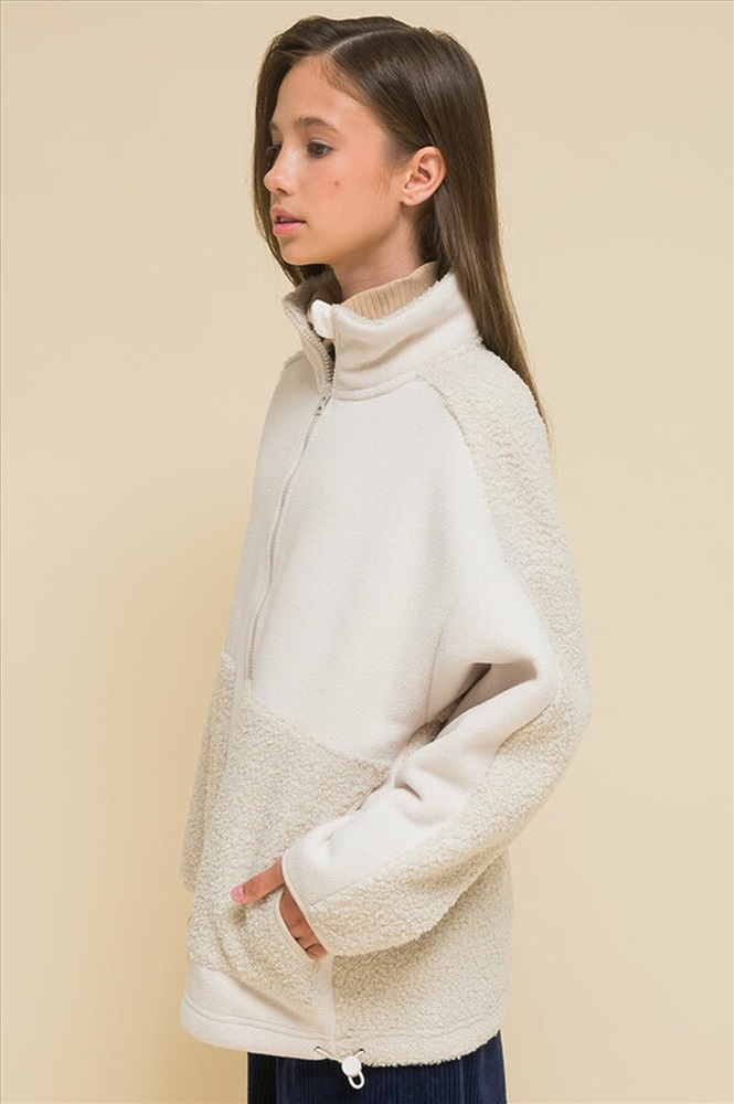 Детское худи для девочек выполнено из мягкого бербер-флиса (фактура «барашка»). Вставки по переду и рукавам, а также внешняя часть воротника — из футера с начесом. Сочетание материалов с разной фактурой — один из модных трендов. Куртка оверсайз-силуэта со спущенным плечом подарит ребёнку комфорт и свободу движения. Толстовка с воротником-стойкой защищает шею от холода и ветра, нет необходимости дополнительно надевать шарф. Внутренняя сторона воротника выполнена из мягкого и приятного на ощупь бербер-флиса. Спереди застёжка на молнию. По низу изделия, по бокам утяжка на эластичный шнур — можно регулировать объём. Большие фигурные накладные карманы из бербер-флиса — удобно пользоваться. Худи однотонное, без принта. За ним просто ухаживать. Одежда из бербер-флиса тёплая, лёгкая, мягкая, просто стирается и быстро сохнет, не выгорает и не скатывается, надолго сохраняет первоначальную форму. Толстовка представлена в двух трендовых цветах: красный и бежевый (молочный оттенок). Она легко комбинируется с различными брюками. Размерный ряд: 1 (86): 2 (92): 3 (98): 4 (104): 5 (110): 6 (116): 7 (122): 8 (128): 9 (134): 10 (140): 11 (146). Худи детское подходит девочкам дошкольного и младшего школьного возраста, а также девочкам-подросткам. Оно идеально для детского сада, прогулок, активного отдыха, спорта и дома. Худи оверсайз для девочки подходит для круглогодичной носки: прохладным летом, осенью, зимой, весной и демисезон. Это замечательный подарок дочери, внучке или сестре на Новый год и любой другой праздник.
