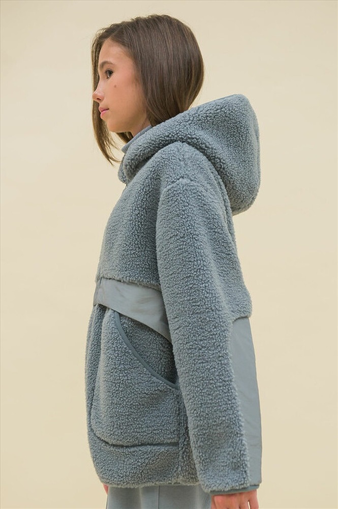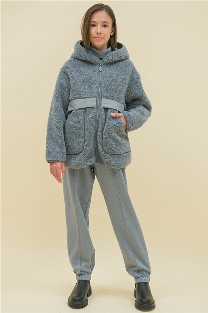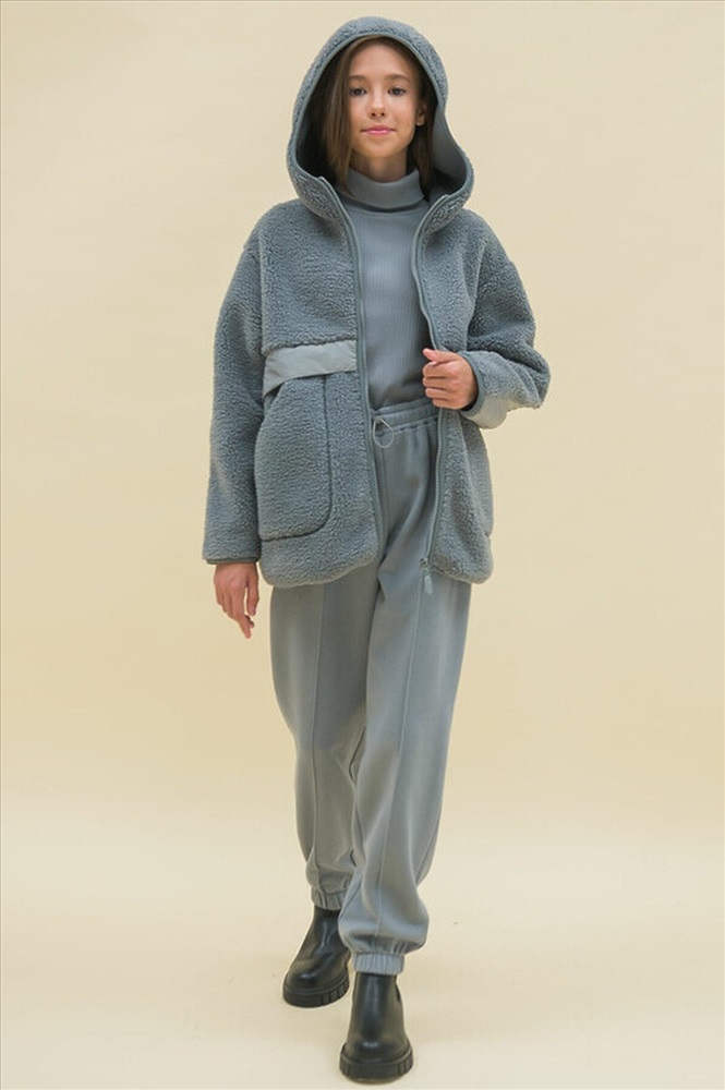 Худи детское для девочки. Куртка выполнена в сочетании двух материалов: бербер-флиса с мягкой фактурой «барашка» и гладкой курточной ткани. Это супермодный тренд. Налокотники из курточной ткани — максимум практичности: рукава не будут мараться и истираться. Худи для девочек актуального оверсайз-силуэта со спущенным плечом подарит ребёнку комфорт и свободу движения. По переду застёжка на центральную молнию. Низ изделия, низ рукавов, края молнии и капюшон окантованы эластичной тесьмой — они не растягиваются и сохраняют форму и отличный внешний вид надолго. Куртка дополнена удобными накладными карманами. Капюшон двухшовный, что обеспечивает анатомически правильную форму и комфортную посадку по голове. Спереди в области талии толстовку украшает оригинальный декор из курточной ткани — стильная и небанальная деталь. Худи однотонное, без принта. За ним легко ухаживать. Основной материал состоит из полиэстера — толстовка тёплая, лёгкая, мягкая, просто стирается и быстро сохнет, не скатывается и сохраняет отличную форму надолго. Вставки — из нейлона, он прочный, не выгорает, не растягивается. Худи выполнено в универсальном сером цвете. Размерная линейка: 1 (86): 2 (92): 3 (98): 4 (104): 5 (110): 6 (116): 7 (122): 8 (128): 9 (134): 10 (140): 11 (146). Худи утеплённое подходит для девочек дошкольного и младшего школьного возраста, а также девочек-подростков. Идеально для детского сада, школы, прогулок, активного отдыха, спорта. Худи с капюшоном можно носить круглый год: прохладным летом, осенью и весной (демисезон), зимой. Оно может заменить ветровку в начале осени или конце весны, а зимой послужит тёплым средним слоем одежды. Замечательный подарок дочери, внучке или сестре на Новый год и любой другой праздник.