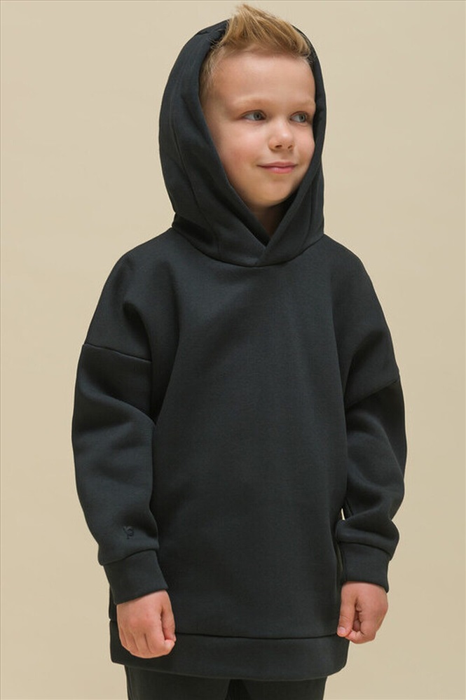 Худи для девочек и мальчиков из футера с начесом свободного силуэта с длинным рукавом, без карманов. Это однотонная базовая вещь для детского гардероба. Красивая и яркая одежда для ребенка, практичная и удобная при надевании для родителей. Двухшовный капюшон с подкладом из основного материала аккуратно ложится по голове и убережет от холода. Манжеты рукавов и низа изделия из основной ткани. Не утягивают, но придают силуэт. Деликатная изюминка модели - силиконовая буква P из логотипа бренда на правом рукаве.