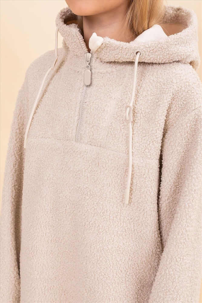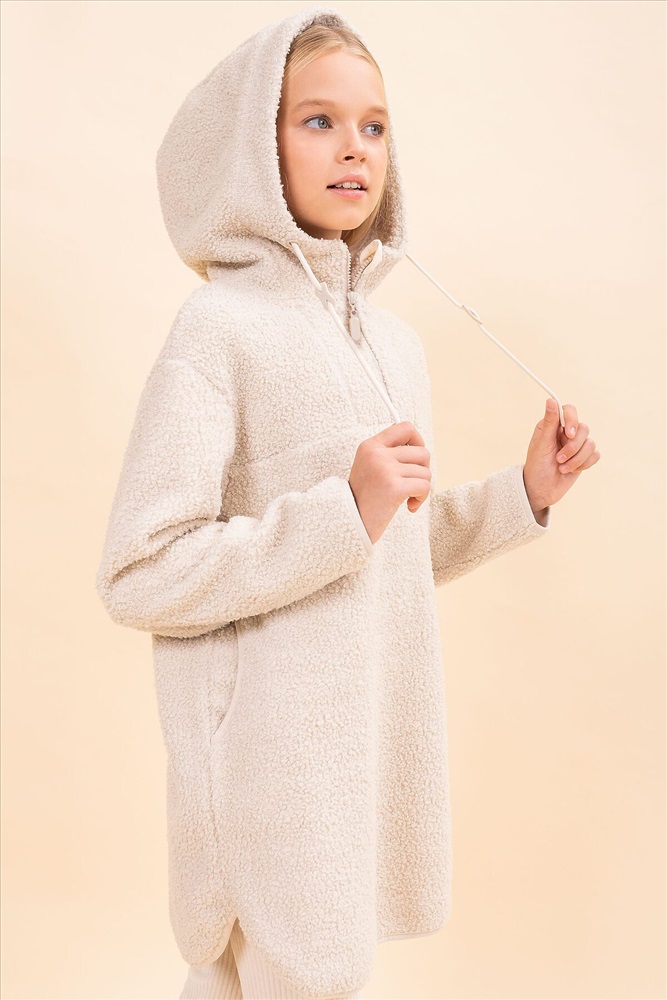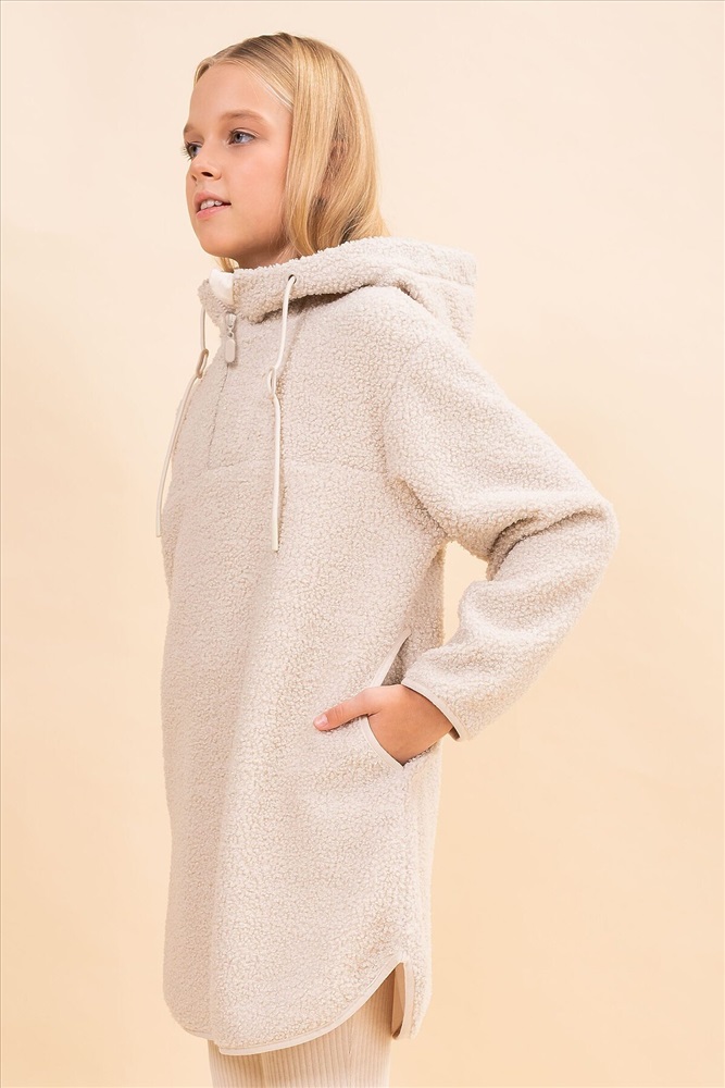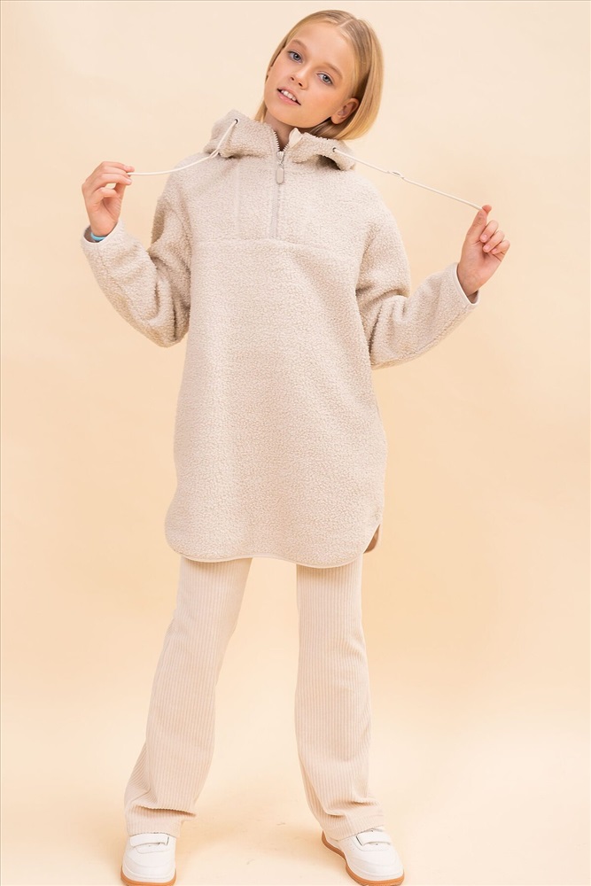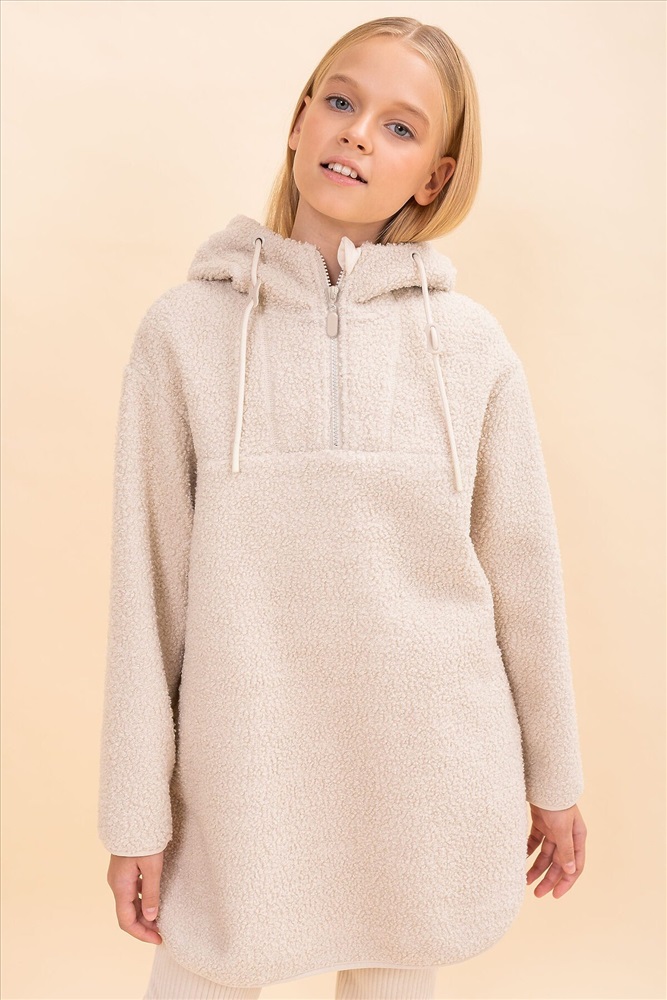 ID товара: 962051 Состав: 100% Полиэстер Сезон: Демисезон Длина: Удлиненная Фасон: Свободный крой Рукав: длинные Вид застежки: Молния Вырез горловины: Капюшон Тип карманов: В шве Основная ткань: Полиэстер Стиль: повседневный Страна бренда: Россия Страна производства: Китай Толстовка для девочки на молнии с капюшоном - очень теплое детское худи удлиненного кроя для демисезонных прогулок в качестве верхней одежды или зимней поддевы при морозной погоде. Меховая толстовка в молочном цвете хорошо согревает, надежно защищает от ветра и укрывает от холода. Детскую флисовую толстовку удобно надевать - горловина застегивается на молнию, а капюшон имеет утяжку на шнурке со стоппером. Холодный ветер не застанет ребенка врасплох: легким движением можно утеплить шею высоким воротом, а капюшоном накрыть голову. Девочки оценят красивый дизайн толстовки на молнии с капюшоном. Худи свободного кроя имеет спущенные плечи, два кармана и модный боковой разрез. Изделие выполнено из двухслойного бербер-флиса. Это мягкий, приятный к телу материал из 100% полиэстера. Лицевая сторона детской толстовки представляет собой фактуру искусственного меха, а изнанка - нежный флис. Худи для девочки порадует легкостью при высоком сохранении внутреннего тепла. Материал хорошо стирается, быстро сохнет, надолго сохранят цвет и привлекательный внешний вид. Ребенок сможет активно играть и двигаться! Флис даже во влажном состоянии сохраняет тепло, не задерживая воздух. Мягкая и теплая, удлиненная кофта для девочки легко заменит куртку и станет любимой одеждой в гардеробе. Детское худи в базовом цвете легко сочетать с любимыми джинсами, леггинсами, джоггерами. Оптимальная длина изделия подходит под пуховик. Стильная толстовка станет удачным новогодним и рождественским подарком для девочки. Сочетание высокого качества материала и пошива с учетом современных модных трендов сделает такой презент практичным и желанным. Комментарии к товару