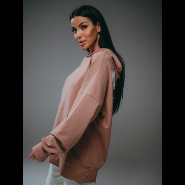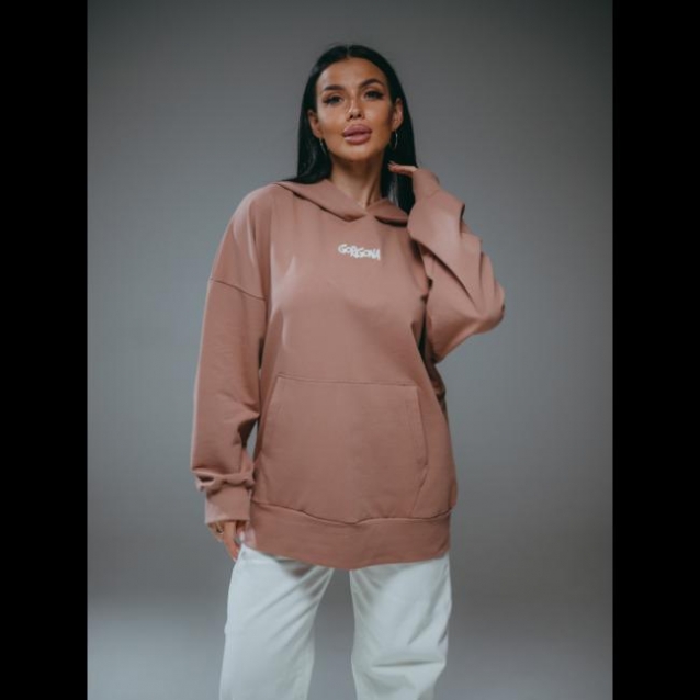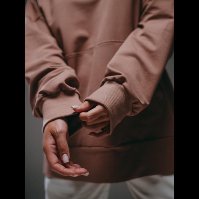 Худи с капюшоном свободного покроя с поясом по низу, со спущенным плечом и длинным втачным рукавом на манжете. Полочка с накладным карманом. Комментарии к товару