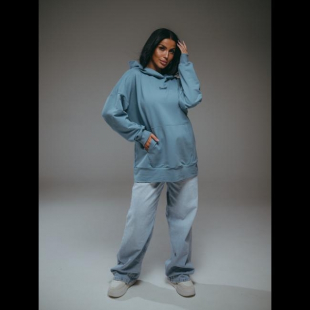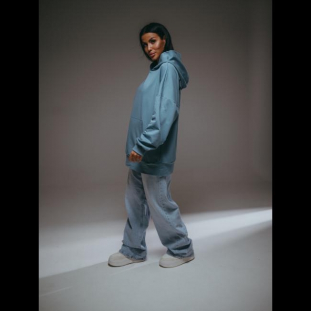 Худи с капюшоном свободного покроя с поясом по низу, со спущенным плечом и длинным втачным рукавом на манжете. Полочка с накладным карманом. Комментарии к товару