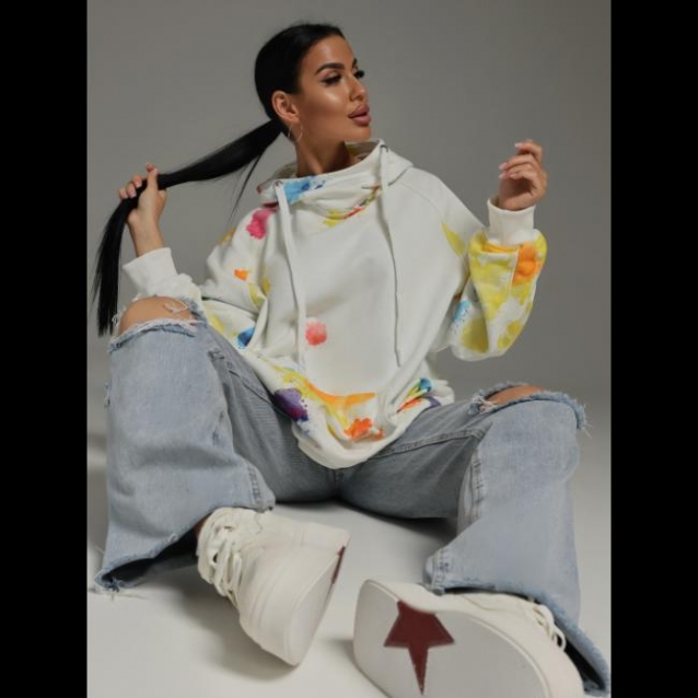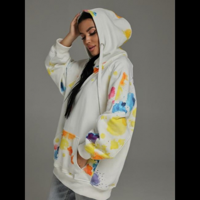 Худи – oversize кроя с притачным поясом по низу, с длинным рукавом реглан на манжете. Комментарии к товару