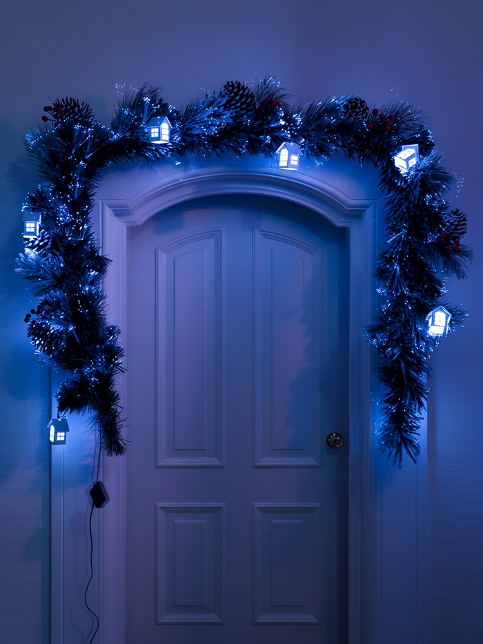 Разместите гирлянду на столе, вдоль подоконника или вокруг новогодней композиции — она мгновенно создаст атмосферу праздника и оживит интерьер, не требуя сложного ухода.