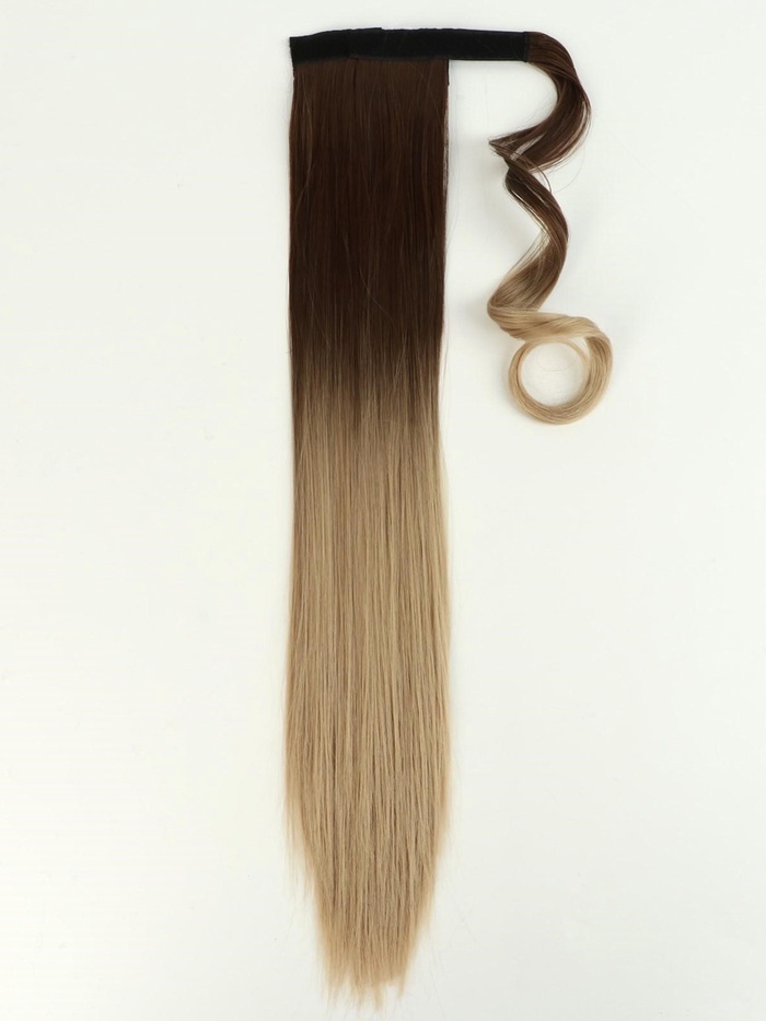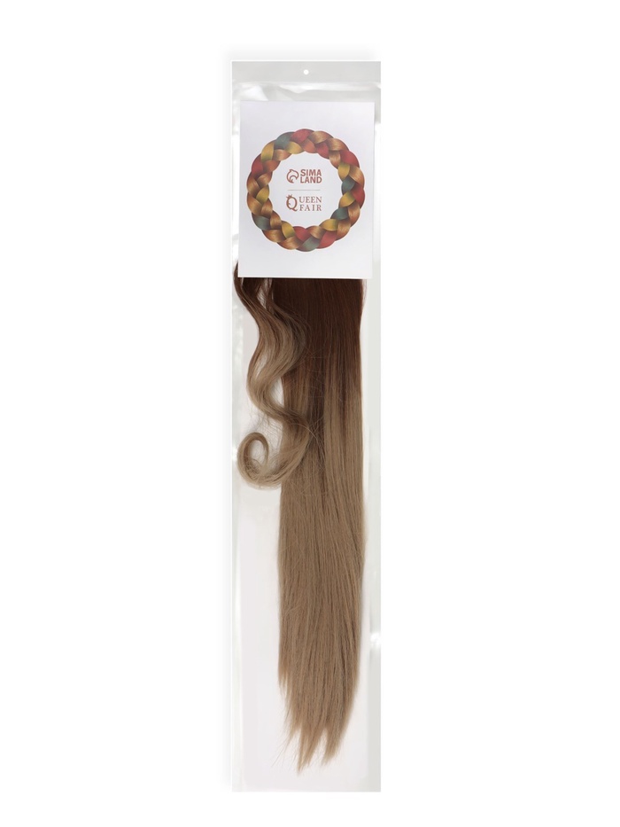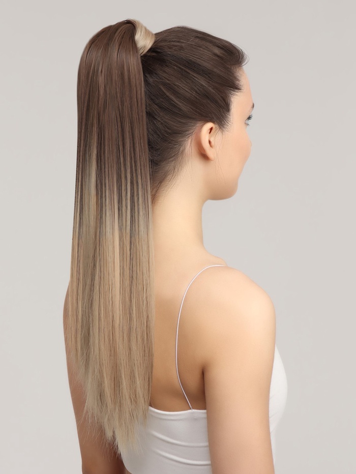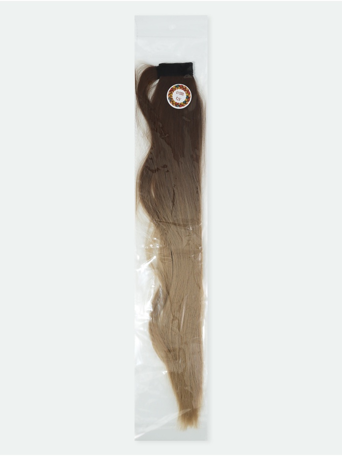 Хвост накладной, прямой волос, на резинке, 60 см, 100 г, омбре русый, блонд