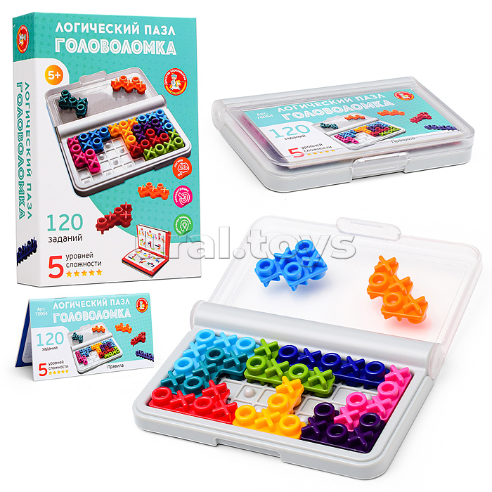 В наборе: - 10 деталей. - игровая доска с отделом для хранения. - правила с заданиями. Материал: бумага, полимерные материалы. Соответствует требованиям безопасности продукции. Для детей от 5 лет.