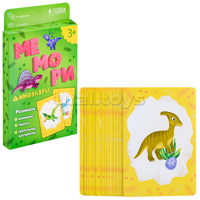 Код: 311991 Штрихкод: 4607177457741 Страна производитель: Россия Размеры упаковки: 15.5 x 8 x 1.5 см Количество в коробке: 20 • В комплекте: 30 карточек с изображениями разных динозавров. • Малышу предстоит найти среди них пары. • Формат карточки: 8х12 см. • Материал: картон. • Соответствует требованиям безопасности и стандартам качества продукции. • Возраст: от 3-х лет. Комментарии к товару