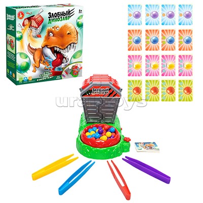 В наборе: - база. - динозавр. - домик. - пинцет 4 шт. - шарики 28 шт. - карточки 24 шт. - наклейки. Работает от батареек 3 шт типа "АА" ( в комплект не входят). Материал: картон, металл, полимерный материал. Соответствует требованиям безопасности продукции. Для детей от 3 лет.