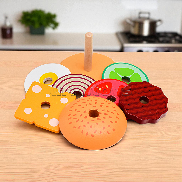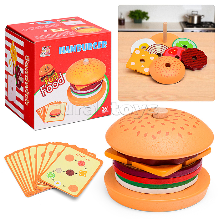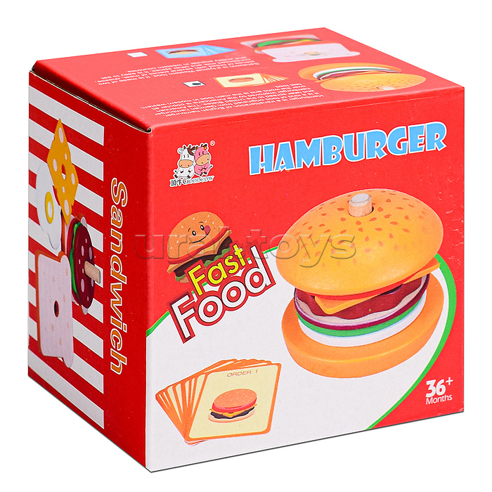 Код: 483573 Штрихкод: 6978459056708 Страна производитель: Китай Размеры упаковки: 10 x 8.5 x 9.5 см Количество в коробке: 80 • В наборе: - 8 деталей для сборки гамбургера. - 10 карточек с вариантами сборки. • Материал: дерево. • Соответствует требованиям безопасности продукции. • Для детей от 3-х лет. Комментарии к товару