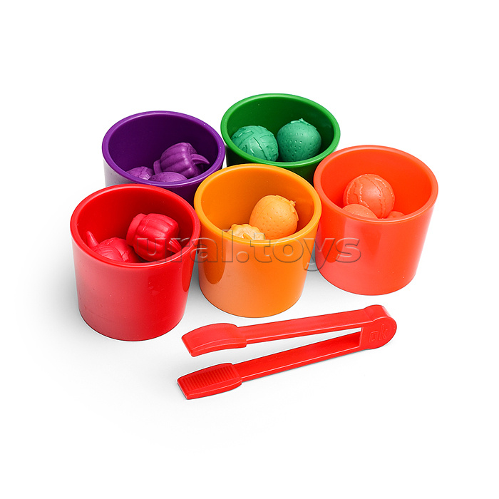 Код: 483558 Штрихкод: 6978459056555 Страна производитель: Китай Размеры упаковки: 18.5 x 12.5 x 5.5 см Количество в коробке: 40 • В наборе: - 5 стаканов (5.5х5.5х5 см.) - 25 фигурок овощей (2х2.5 см.) - щипцы. • Материал: пластик. • Соответствует требованиям безопасности продукции. • Для детей от 3-х лет. Комментарии к товару