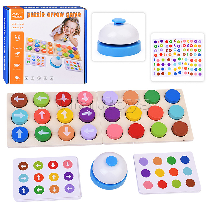 Код: 470561 Штрихкод: 6978459041285 Страна производитель: Китай Размеры упаковки: 22.7 x 21.8 x 5.5 см Количество в коробке: 40 В наборе: - игровое поле 2 шт. - звонок. - 24 фишки-стрелочки. - 16 карточек. Материал: дерево, картон. Соответствует требованиям безопасности продукции. Для детей от 3 лет. Комментарии к товару
