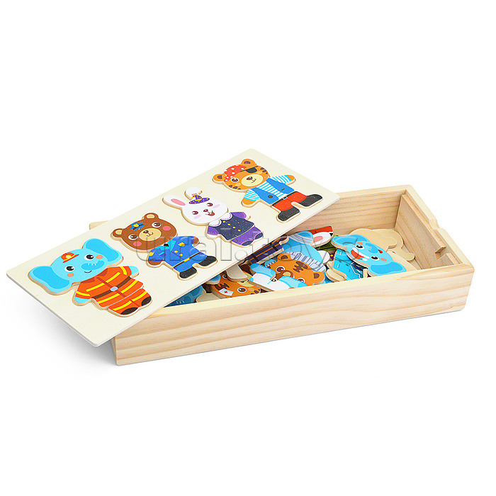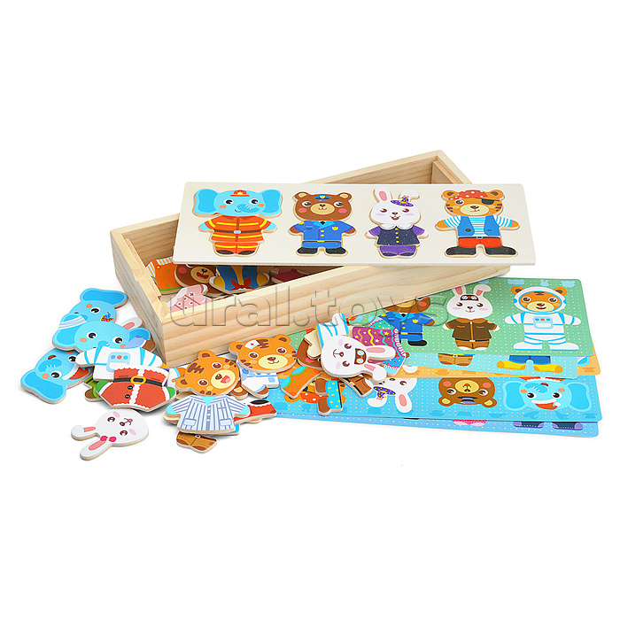 Код: 493630 Штрихкод: 6978459071312 Страна производитель: Китай Размеры упаковки: 13 x 30 x 4.5 см Количество в коробке: 48 В наборе: - деревянная коробка (30х13х4,5 см.). - деревянные фтгурки. - карточки 5 шт. Материал: дерево, картон. Соответствует требованиям безопасности продукции. Для детей от 3 лет. Комментарии к товару