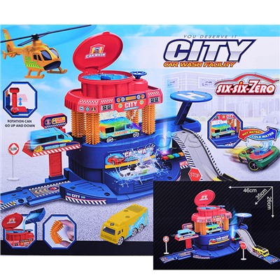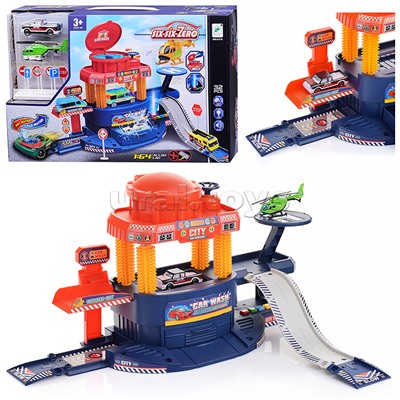 Код: 371010 Штрихкод: 6933112942293 Страна производитель: Китай Размеры упаковки: 43 x 11 x 27 см Количество в коробке: 9 Двухуровневая парковка и автомойка с посадочной зоной для вертолёта сделают игру с машинками увлекательней и разнообразней, а наличие дорожных знаков и указателей поможет ребёнку освоить основные правила дорожного движения. Гараж оборудован рабочей автомойкой с лифтом, просто залейте тёплую воду, загоните машинку и покрутите вентиль - на машинку польется вода и она изменит свой цвет! Лифт поднимается механическим прокручиванием шестеренки. Вода сливается в специальный отсек, не разбрызгиваясь вокруг. Четыре кнопки под вертолетной площадкой проигрывают четыре вида сирен с синей подсветкой. Звук и свет работают от 3-х батареек "AG13" (в комплекте). В комплекте машинка, вертолет, семь дорожных знаков. Размер конструкции: 46 х 26 х 35 см. Материал: пластик, пвх, металл. Для детей от 3-х лет. Соответствует требованиям безопасности продукции. Комментарии к товару