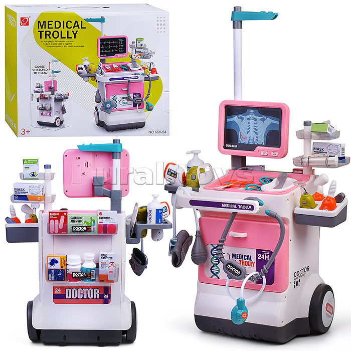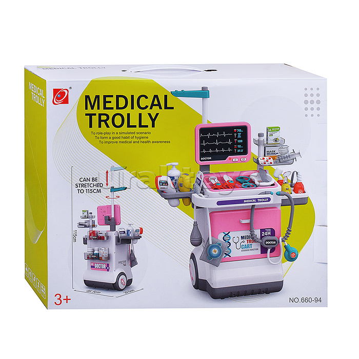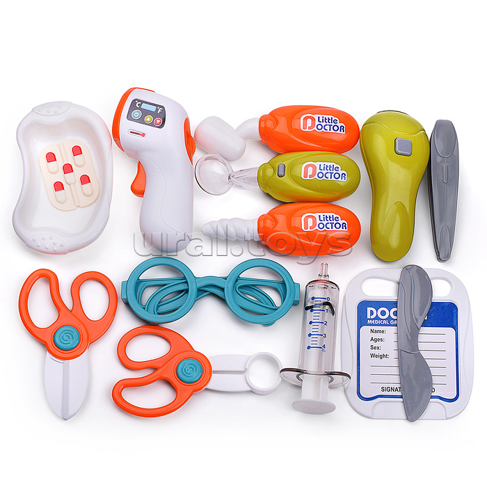Код: 491162 Штрихкод: 6904111942775 Страна производитель: Китай Размеры упаковки: 38 x 46 x 15 см Количество в коробке: 12 • Размеры игрушки: 46.5 х 29.5 х 115 см. • В комплекте: - фонарик - работает от 2-х батареек "AG13" (не входят в комплект) - ложка с подсветкой - работает от 2-х батареек "LR1130" (не входят в комплект) - термометр - работает от 2-х батареек "AG13" (не входят в комплект) - монитор - работает от 2-х батареек "ААА" (не входят в комплект) - фонендоскоп - работает от 2-х батареек "AG13" (входят в комплект для демонстрации) - инструменты врача (27 предметов) • Функции монитора: звук биения сердца, звук работы. • Функции термометра: звук сканиования, красная подсветка. • Функции фонендоскопа: звук биения сердца. • Материал: пластик. • Соответствует требованиям безопасности продукции. • Для детей от 3-х лет. Комментарии к товару
