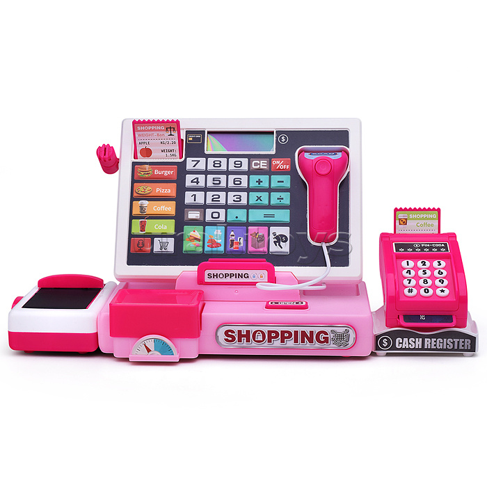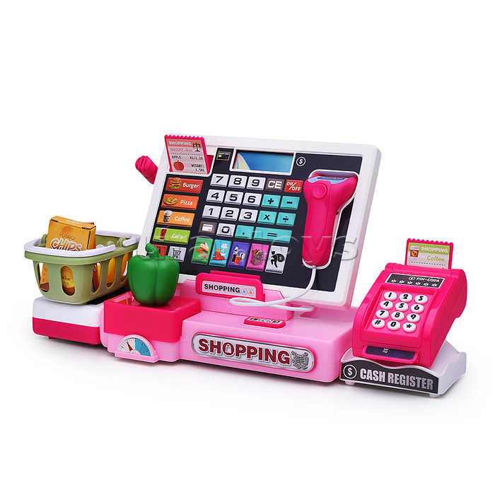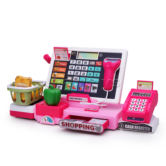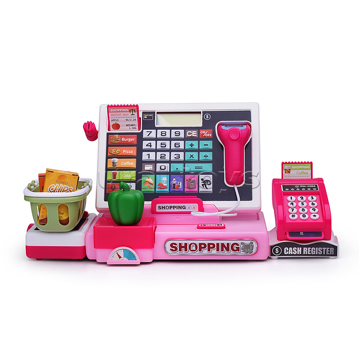 • Размеры кассы: 36х11х16 см. • Функции кассы: - калькулятор. - терминал оплаты. - звук сканера. - денежный ящик открывается вручную, • Касса работает от 2-х батареек "АА" (не входят в комплект). • В комплекте: - монеты и купюры. - корзина (7.5х10.5х5 см.) - 2 фигурки продуктов. • Материал: пластик. • Соответствует требованиям безопасности продукции. • Для детей от 3-х лет.