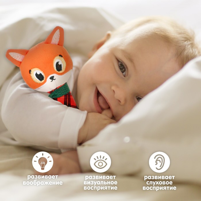 Компактный размер — 16 см — позволяет брать игрушку на прогулки или в гости. Пищалка внутри надолго увлекает малыша, а родители могут не переживать за безопасность — материалы проверены, краски не токсичны. Это не просто лисичка, а тренажёр для маленьких пальчиков и источник радости в праздники! Комментарии к товару