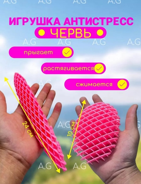 Новый тренд из ТикТок- игрушка-червь! Совершенно новая трендовая игрушка антистресс Worm Morf mini станет прекрасным подарком для вас и ваших близких. Этот фиджет в форме шара красивых ярких разных цветов не только приятно лежит в руке, но и способен принести немало радости и интересных моментов вашей дочке или сыну, делая их самыми крутыми среди своих одноклассников. Вы не разочаруетесь от покупки этой игры потому что она развивает мелкую моторику детских рук, пространственное мышление, воображение и логику ребенка. Эта необычная развивашка обладает приятными тактильными ощущениями. Просто сжимайте ее в руках, подбрасывайте чтобы расслабиться и снять напряжение,такое взаимодействие позволяет снять стресс и усталость , улучшить настроение и повысить концентрацию. Игрушка- червь станет незаменимым помощником для мужчин и женщин, работающих в офисе , а так же связанных с тяжелой мозговой деятельностью в течение дня.