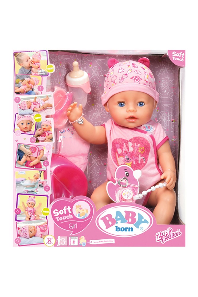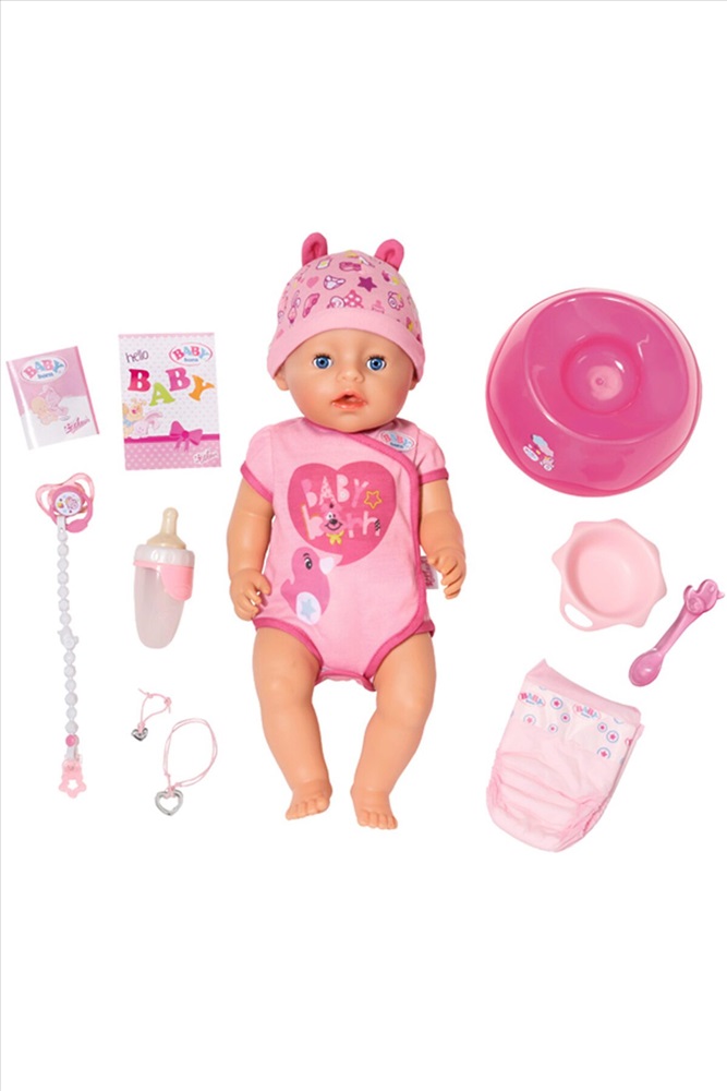 Очаровательная интерактивная кукла-пупс Baby born от Zapf Creation станет отличным подарком для Вашего ребенка. Игрушка выглядит невероятно реалистично и очень похода на настоящего ребенка. За ней так приятно ухаживать, девочка научится проявлять ласку и заботу, выработает чувство ответственности. Малышка Baby born одета в нежно-розовый боди с забавными рисунками на груди, а дополняет костюм шапочка в тон с очаровательными ушками.
