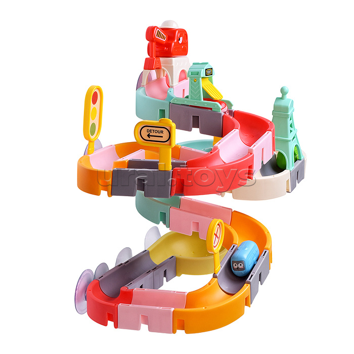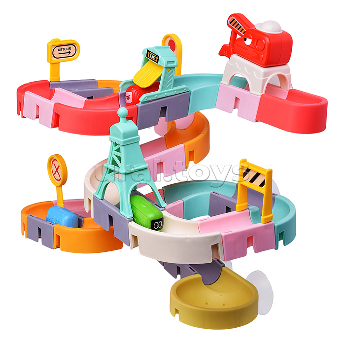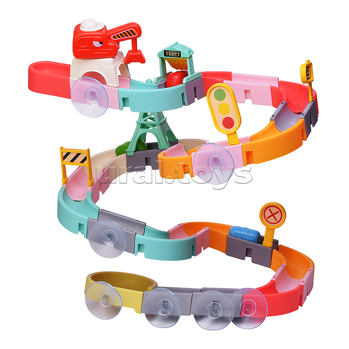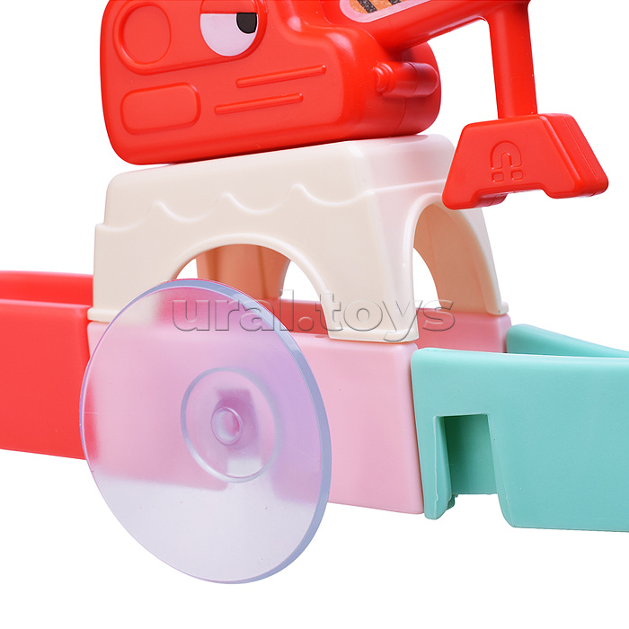 Код: 487717 Штрихкод: 6904111640961 Страна производитель: Китай Размеры упаковки: 24 x 20 x 11 см Количество в коробке: 36 • Размеры игрушки: 34х20х28 см. • В комплекте 3 машинки с металлическими роликами (4.5х2х2.5 см.) • Детали крепяться при помощи присосок. • Материал: пластик. • Соответствует требованиям безопасности продукции. • Для детей от 1.5 лет. Комментарии к товару