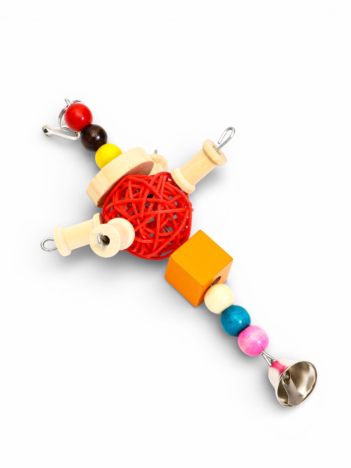 Игрушка «Деревяшка» для птиц размером 22×9 см с текстурированной поверхностью и дополнена колокольчиком. Эта игрушка не просто украшение — она помогает снять стресс, предотвратить скуку и разрушительное поведение.