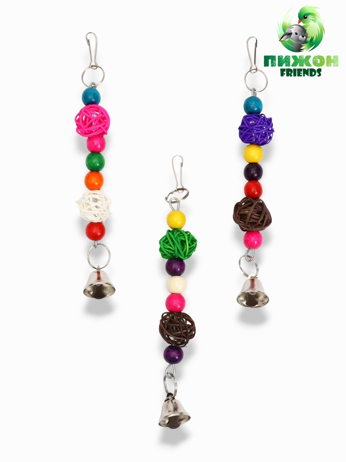 - Конструкция с колокольчиками: При движении издают мягкий звон — это привлекает внимание и поддерживает интерес даже у самых спокойных птиц.