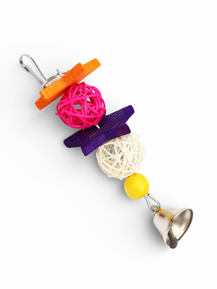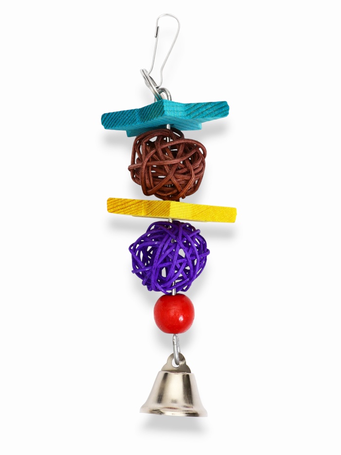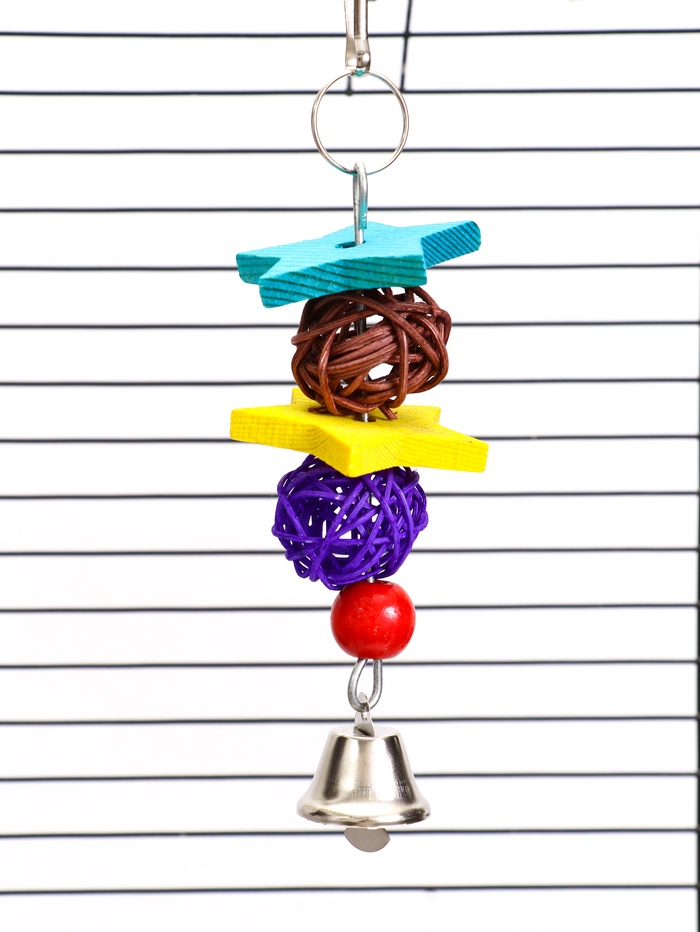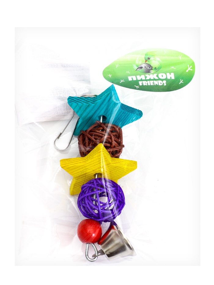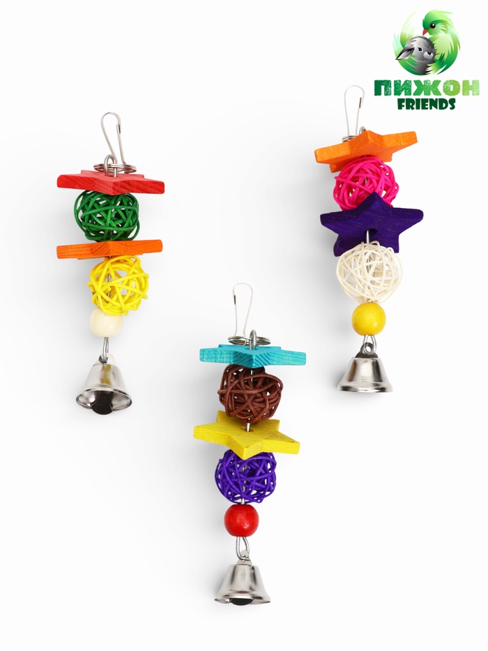 Габариты: 11 x 5 x 4 Страна: Китай В боксе: 192 шт Состав: Дерево, металл, пластик Материалы: дерево, металл, пластик Фасовка: по 12 шт Индивидуальная упаковка: Без упаковки Габариты товара: 16 см × 5 см Сертификат: Не подлежит сертификации С колокольчиком: Да Игрушка «Лоза-звезда» для птиц диаметром 16 см сочетает плетёную текстуру и подвижный колокольчик. Эта игрушка задействует сразу несколько инстинктов: исследование, жевание, реакцию на звук. Она помогает предотвратить скуку, апатию и разрушительное поведение (выщипывание перьев, крики). Особенности: