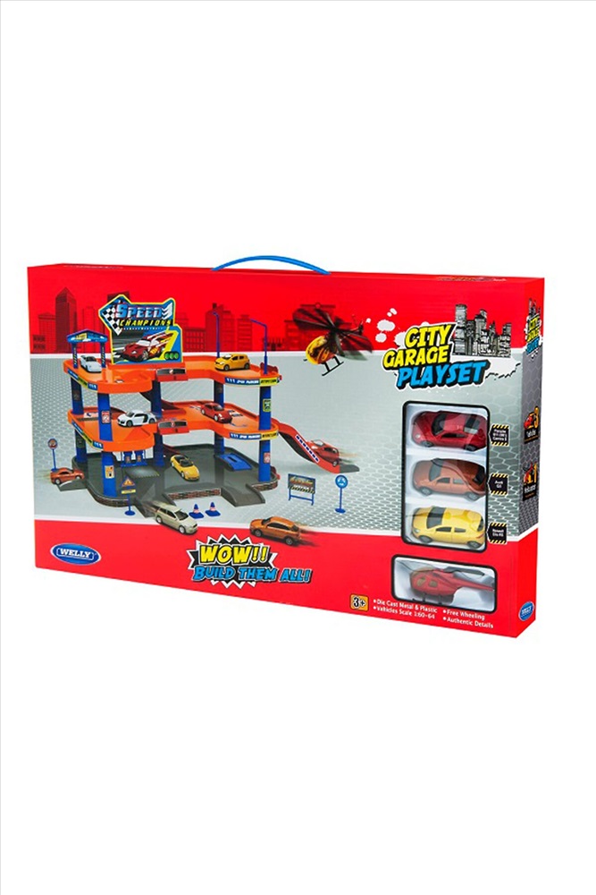 Вот это да! Такой игровой набор от Welly — мечта любого мальчика! Это же огромное пространство для гонок в три яруса. А еще здесь есть площадка для вертолета, игра точно будет невероятно интересной. В наборе: Игровое пространство с тремя ярусами; Внедорожники – 2 шт.; Легковой автомобиль; Вертолет; Дорожные знаки. Все составляющие комплекта выглядят очень реалистично, они хорошо проработаны и детализированы. У машинок подвижные колеса, а у вертолета вращаются лопасти. Производителем учтены все технические особенности кузовов транспортных средств. Мальчик сможет устроить настоящий гоночный турнир, использовав все три яруса, так здорово пригласить друзей и от души повеселиться. Кто придет к финишу первым? Игрушки изготовлены из высококачественных, ударопрочных материалов, которые абсолютно безопасны для здоровья детей.