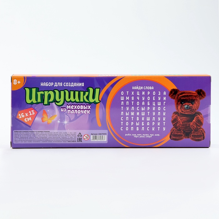 Габариты: 31 x 11,5 x 3 Страна: Китай В боксе: 40 набор Состав: Бумага, металл, пластик, текстиль Материалы: бумага, металл, пластик, текстиль Фасовка: по 1 набор Индивидуальная упаковка: Цветная картонная коробка Габариты товара: 31 см × 10 см × 5 см Сертификат: ЕАС Возраст: От 7 лет Символ года: Нет Тематика праздника: Универсальная тематика Материал: Пластик, Металл, Текстиль Материал для аппликации: Меховые палочки Для создания: Игрушки Составляющие набора: Товары для творчества Возраст: Для детей Этот набор позволит создать уникальные пушистые игрушки своими руками! Особенности набора: Игрушка из меховых палочек станет отличным подарком для всех детей и взрослых. КомплектацияКомментарии к товару