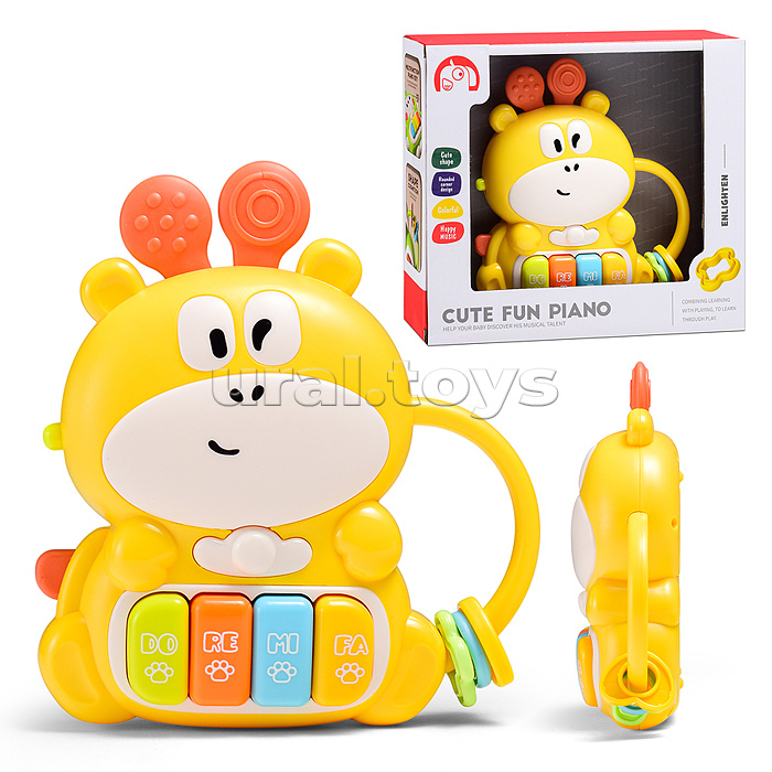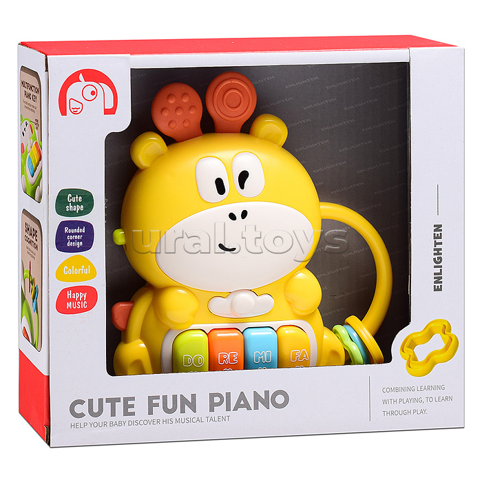 Код: 501936 Штрихкод: 6904111944489 Страна производитель: Китай Размеры упаковки: 20 x 5.5 x 17 см Количество в коробке: 96 • Размеры игрушки: 13х3.5х15 см. • Функции: - 4 ноты. - мелодии. - детский смех. - звуки животных. - подсветка клавиш. • Работает от 2-х батареек "АА" (не входят в комплект). • Материал: пластик. • Соответствует требованиям безопасности продукции. • Для детей от 1.5 лет. Комментарии к товару