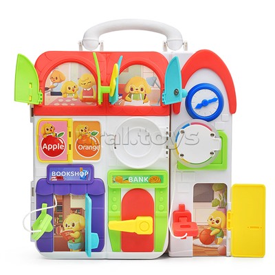 Код: 455076 Штрихкод: 6933116426805 Страна производитель: Китай Размеры упаковки: 25 x 27 x 10 см Количество в коробке: 16 Размер в закрытом виде: 22,5 х 7 х 23 см. Размер в открытом виде: 37 х 7 х 23 см. Ребенок проявляет любопытсво и интерес, что же находиться за дверками и окошками, нужно догодаться как они открываются, используя ключик или разные замочки. В бизиборде интерактивном собраны все базовые вещи которые малыш узнает: Часы и день/ночь фрукты, цифры, цвета, телефон и розетки, элементы одежды, шнурки, застежки, крутилки и кнопочки - все очень интересно. 3 батарейкеи АА - в комплект не входят. 2 языка английский и испанский. 2 режима громкости. Учим цвета, цифры, развиваем логическое мышление, мелкую моторику и запуск речи , малышам очень нравятся подобные игрушки, так как в них очень много всего интересного, что в обычной жизни у них нет возможности потрогать и понажимать, повтыкать. Игра выполнена из высококачественного безопасного прочного материала, силиконовыми деталями. Соответствует требованиям безопасности продукции. Для детей от 18-ти месяцев. Комментарии к товару