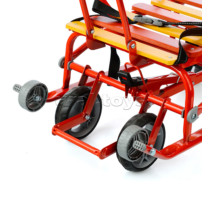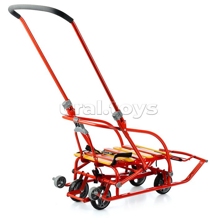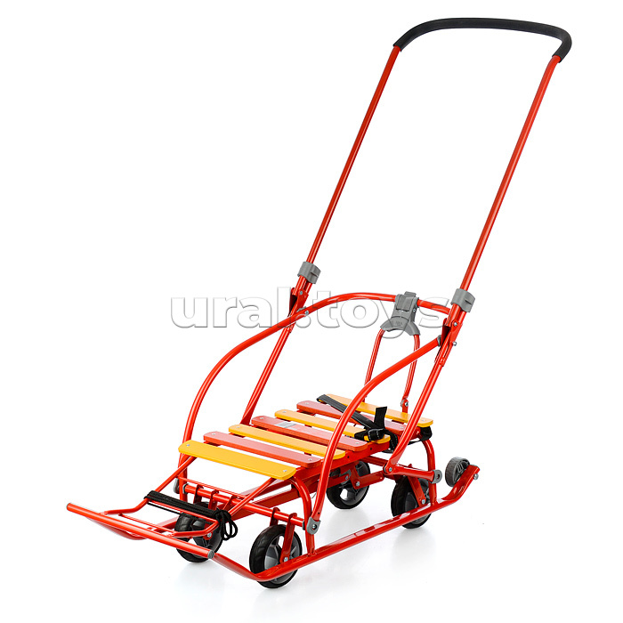 • Санки детские с механизмом выдвижных колесных шасси • Область применения: для катания и перевозки детей • Материал: каркас – металл; сидение – деревянные рейки; ремень безопасности – ременная лента • Преимущества: • механизм выдвижных колесных шасси • складная спинка и ручка • поперечная рейка • удлиненная база • ступенчатая подножка • ремень безопасности • обрезиненные колеса на полозьях для удобной транспортировки • Грузоподъемность санок: не >25кг • Габариты: • в разложенном виде (Д без ручки х Ш по спинке х В по спинке): 860х380х420/480мм • высота санок по сиденье: 190/245мм • сиденье (ДхШ): 460х340мм • плоские полозья: 30х15мм • высота с ручкой: 940/990мм • в упаковке (ДхШхВ): 933х470х225мм • Вес: 8,5кг • Соответствует требованиям безопасности и качества продукции. • Для детей от 1 года.