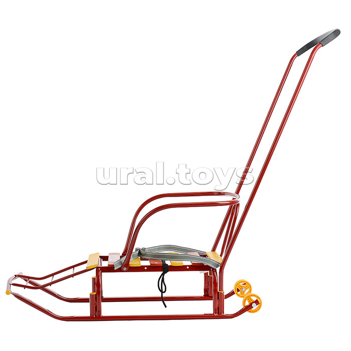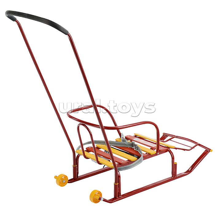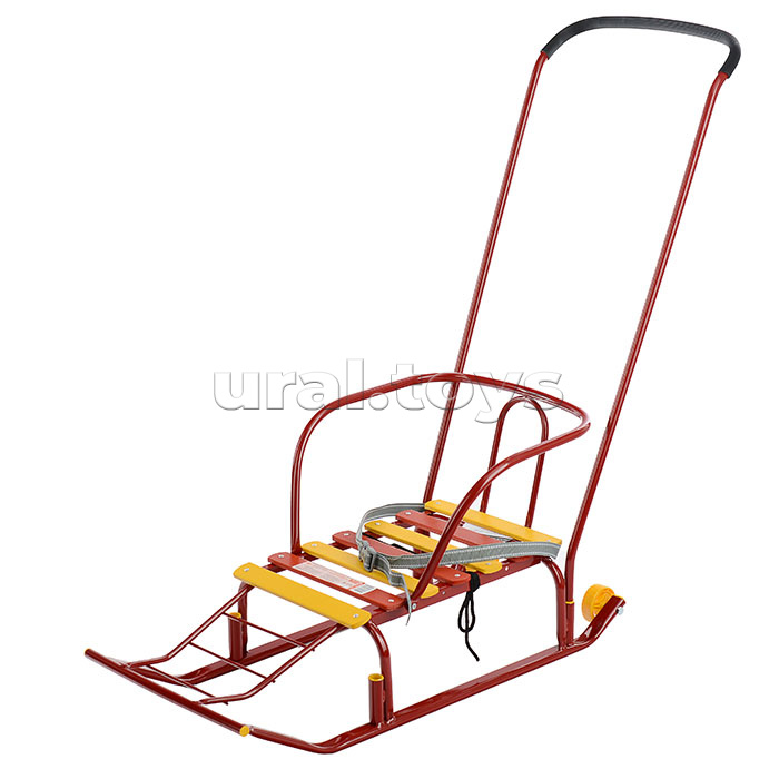 Код: 335598 Страна производитель: Россия Размеры упаковки: 84 x 42 x 24 см Количество в коробке: 1 • Материал: каркас – металл; сиденье – деревянные рейки; ремень безопасности – ременная лента. • Пластиковые колеса на полозьях для удобной транспортировки. • Максимальная нагрузка: 25 кг. • Размеры санок (Д без ручки х Ш по спинке х В по спинке): 855х385х425мм • Высота санок по сиденье: 180 мм. • Размеры сиденья: 460х290мм • Плоские полозья: 30х15мм • Высота с ручкой: 930 мм. • Съёмная ручка-толкатель (устанавливается на заднюю или на переднюю часть санок). • Соответствует требованиям безопасности и стандартам качества продукции. • Возраст: от 1 года. Комментарии к товару