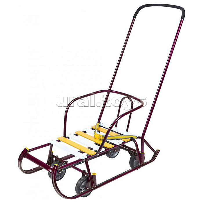 Код: 508160 Штрихкод: 2200235595854 Страна производитель: Россия Размеры упаковки: 0 x 0 x 0 см Количество в коробке: 1 • ВНИМАНИЕ! Уцененный товар обмену и возврату не подлежит. • Санки детские с механизмом выдвижных колесных шасси • Область применения: для катания и перевозки детей • Материал: каркас – металл; сиденье – деревянные рейки; ремень безопасности – ременная лента • Цвет: амарантовый лак • Преимущества: • удлиненная база • расширенная устойчивая колесная база • поперечная рейка • ручка два положения • пластиковые вкладыши под толкатель • ремень безопасности • механизм выдвижных колесных шасси • обрезиненные колеса на полозьях для удобной транспортировки • грузоподъемность санок: не >25кг • Габариты: • в разложенном виде на полозьях (Д без ручки х Ш по спинке х В по спинке): 820х385х425мм • в разложенном виде на колесах (Д без ручки х Ш по спинке х В по спинке): 820х405х485мм • высота санок по сиденье на полозьях/на колесах: 190/245мм • сиденье (ДхШ): 460х310мм • плоские полозья: 30х15мм • высота с ручкой на полозьях/на колесах: 940/990мм • Вес: 7,1кг • Соответствует требованиям безопасности и стандартам качества продукции. • Возраст: от 1 года. Комментарии к товару