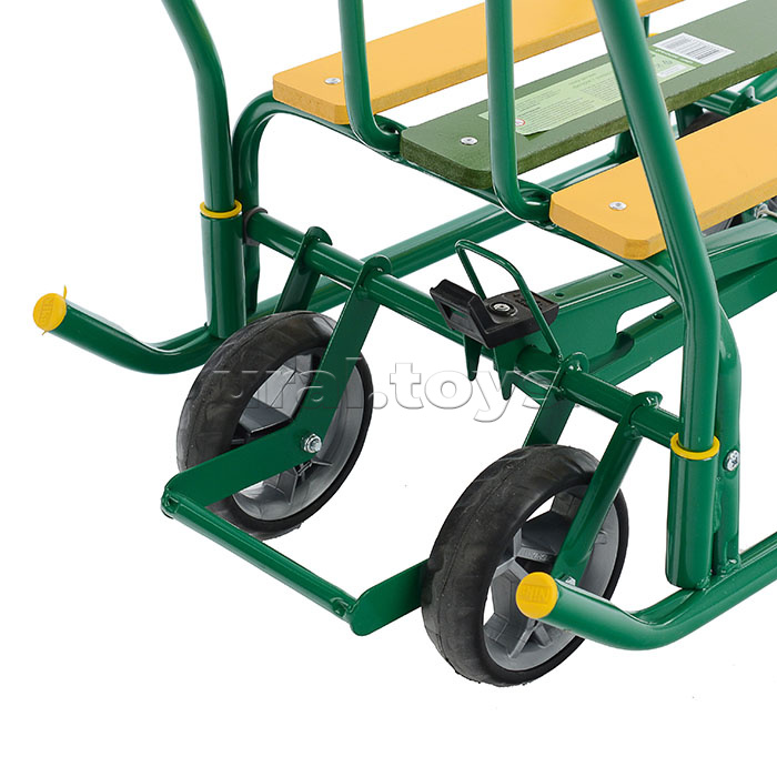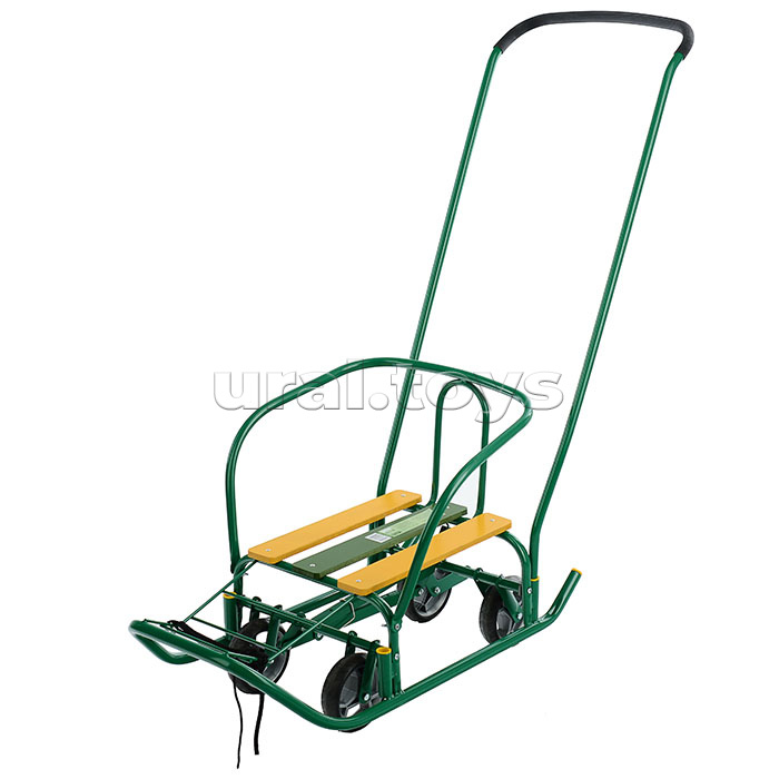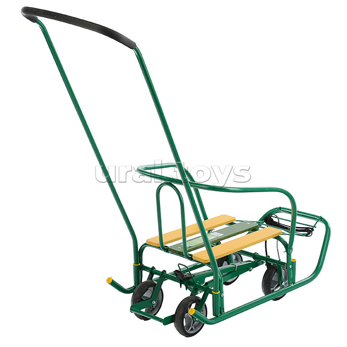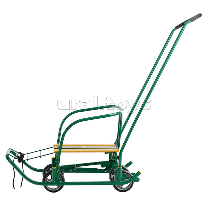 • Санки детские с механизмом выдвижных колесных шасси. • Область применения: для катания и перевозки детей • Материал: каркас – металл; сиденье – деревянные рейки; пластиковые колёса с накладками из ЭВА. • Максимальная нагрузка: 25 кг. • Размеры санок (Д без ручки х Ш по спинке х В по спинке): 740х415х425мм • Высота санок по сиденье на полозьях/на колесах: 183/240мм • Размеры сиденья: 380х250мм • Круглые полозья: d=20 мм. • Съёмная ручка-толкатель (устанавливается на заднюю или на переднюю часть санок) • Высота с ручкой на полозьях/на колесах: 960/1020 мм. • Диаметр колёс: 12 см. • Вес (без толкателя): 5,1 кг. • Соответствует требованиям безопасности и стандартам качества продукции. • Возраст: от 1 года.