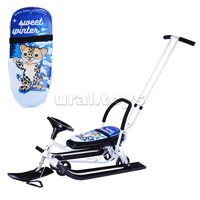 • Размеры снегоката: 115х49х62 см. • Размеры сидения: 44х20 см. • Сидение из искусственной кожи. • Спинка съёмная, складная. • Съёмная, регулируемая по высоте родительская ручка. • Высота родительской ручки: 107, 112 см. • Вес снегоката: 9.75 кг. • Выдвижная колесная база. Колеса – литая резина. Диаметр 12 см. • Буксировочный трос с пластмассовой ручкой. • Страховочный ремень. • Грузоподъемность при установленном толкателе: 30 кг. • Грузоподъемность при снятом толкателе:100 кг. • Материал: пластик, металл. • Соответствует требованиям безопасности продукции. • Для детей от 3-х лет.
