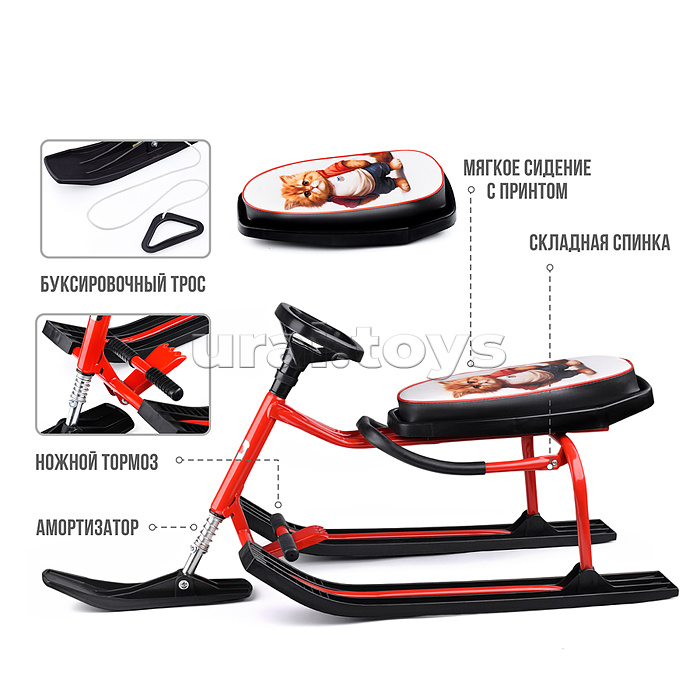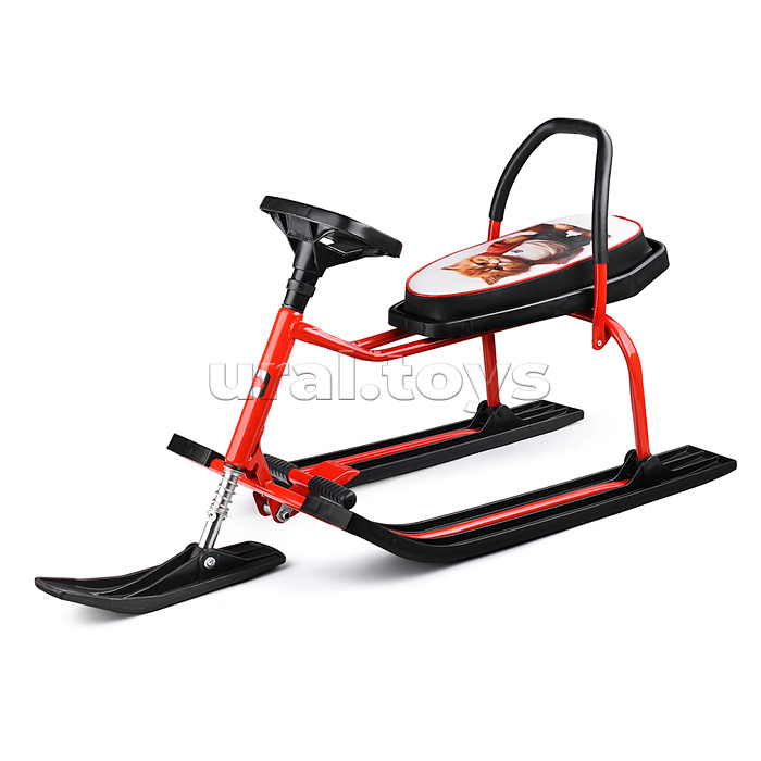 • Высокая стальная сварная рама с порошковой покраской. • Лыжи и руль изготовлены из прочной морозостойкой пластмассы. • Сиденье из ПВХ, складная спинка. • В комплекте буксировочный трос. • Максимальная грузоподъёмность: 100 кг. • Размеры снегоката: 112.5х48.5х57 см. • Высота сиденья: 38.5 см. • Размеры сиденья: 44.5х20 см. • Ширина колеи: 37.5 см. • Соответствует требованиям безопасности продукции. • Для детей от 7 до 14 лет.