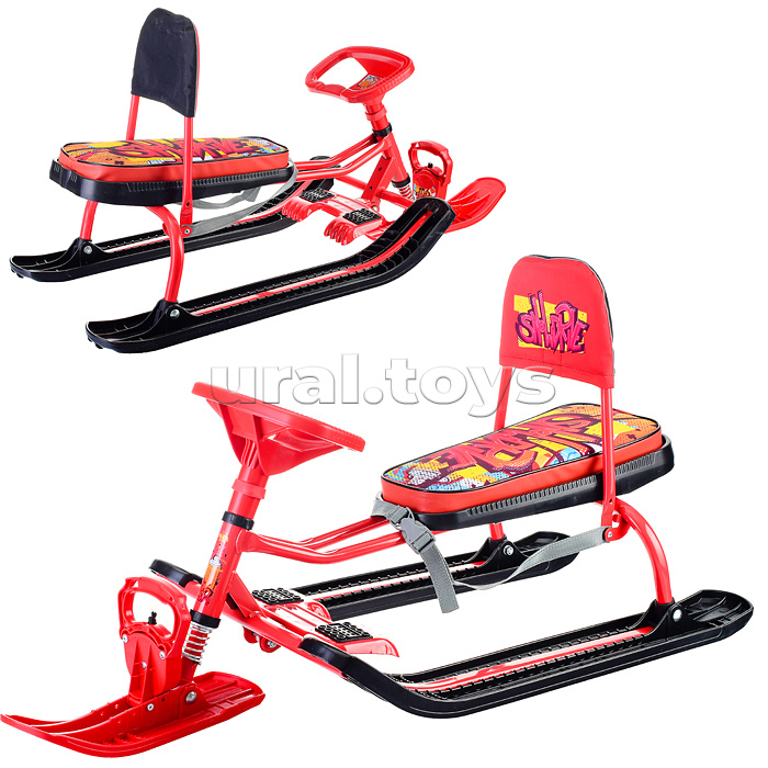 • Размеры снегоката: 110х49х42 см. • Размеры сиденья: 44.5х20 см. • Высота по спинке – 45 см. • Высота по руль – 42 см. • Высота по сиденью – 29 см. • Максимальная нагрузка: 100 кг. • Лыжи изготовлены из морозостойкой пластмассы. • Сиденье мягкое, обтянутое искусственной кожей с рисунком. • Буксировочный трос с автонамоткой. • Съёмная складная спинка. • Соответствует требованиям безопасности продукции. • Для детей от 4-х лет.