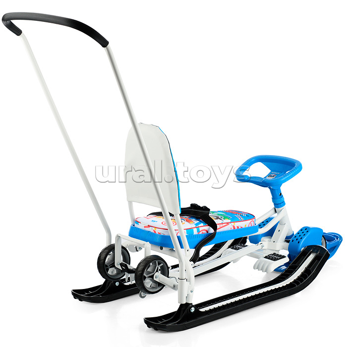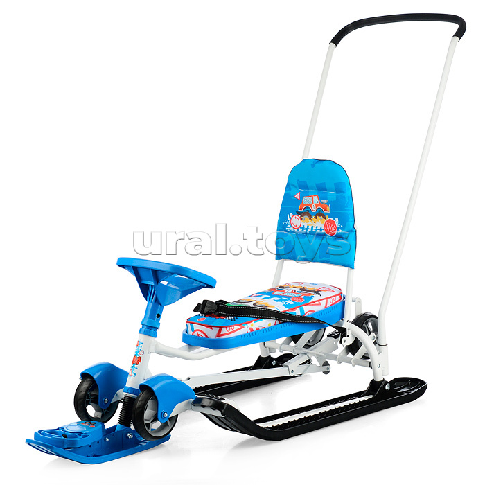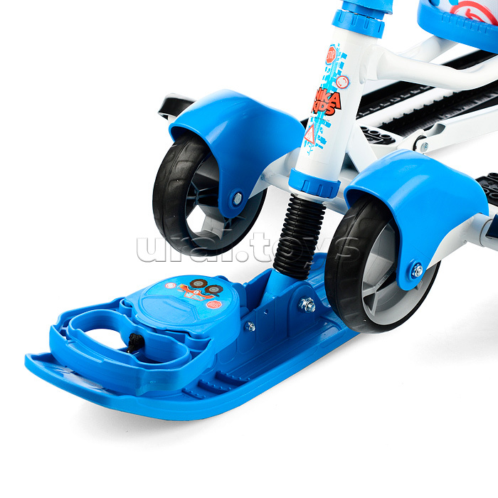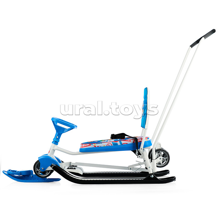 Преимущества: • 2 в 1: колеса и полозья позволяют свободно передвигать снегокат по любой дороге; • механизм выдвижных шасси поможет перекатить снегокат по проезжей части дороги; • буксировочный трос с автоматической намоткой; • усиленный широкий тормоз эффективен даже на обледенелой поверхности; • родительская ручка-толкатель; • мягкое сиденье; • комплект ярких наклеек для снегоката в подарок! Грузоподъемность: • в положении на колесах не более 25 кг; • в положении на лыжах не более 100 кг. (без нагрузки на толкатель) Габаритные размеры: • в разложенном виде (ДхШ) – 1120 х 490 мм; • сиденье (ДхШ) – 445 х 200 мм; • высота по руль – 420 мм. • высота по сиденью (положение на лыжах) – 290 мм; • высота до ручки толкателя – 920 мм; • вес – 10 кг. Для детей от 3-х лет.