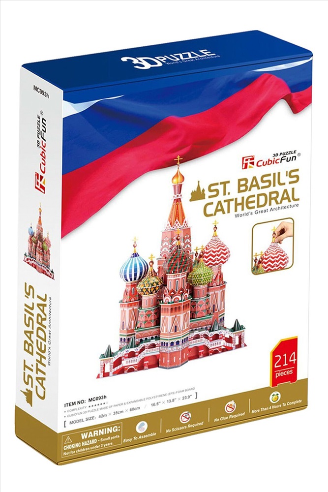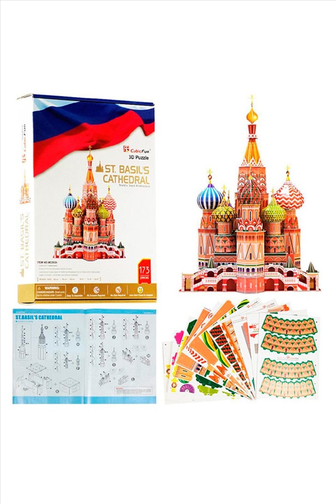 Этот замечательный конструктор-головоломка познакомит Вашего ребенка со знаменитым Собором Василия Блаженного, пора отправиться в увлекательное путешествие в Москву. Сооружение находится прямо на Красной площади и в первую очередь ассоциируется со столицей нашей родины. Оно занесено в список объектов всемирного наследия ЮНЕСКО в России. Существует легенда, что, когда Иван Грозный увидел возведенный храм, он приказал выколоть архитекторам глаза, чтобы те не смогли больше построить ничего подобного. Набор состоит из 214 деталей, которые изготовлены из бумаги и пены EPS, для его сборки не требуются инструменты и клей. Конструктор имеет 6-й уровень сложности и рекомендован детям от 12 лет. Функции: помогает в развитии логики и творческих способностей ребенка; способствует формированию мышления, внимания, восприятия и воображения; развивает моторику рук; расширяет кругозор и стимулирует к познанию новой информации. Практические характеристики: обучающая, яркая и реалистичная модель; идеально и легко собирается без инструментов; увлекательный игровой процесс; тематический ассортимент; новый качественный материал (ламинированный пенокартон).